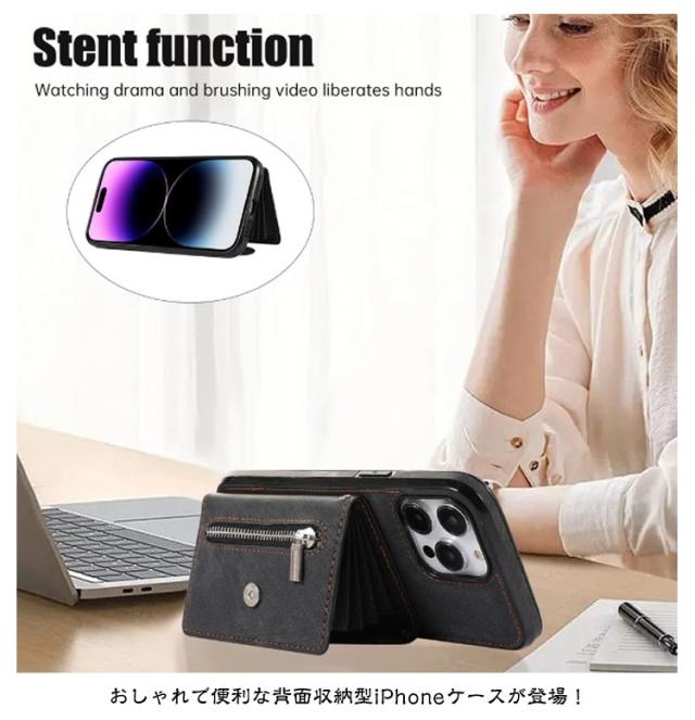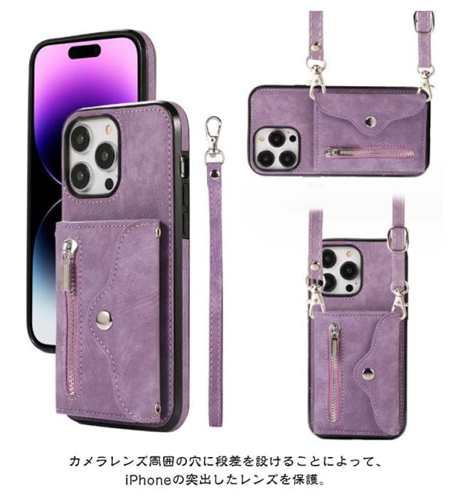 ストラップ ショルダー付き iPhone15 ケース 背面収納 ケース ミニ財布 小銭入れ スマホケース 財布型 スマホ ショルダー 肩掛け 斜め掛け 背面 カード収納 カードポケット 送料無料