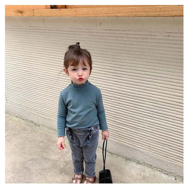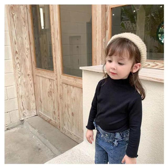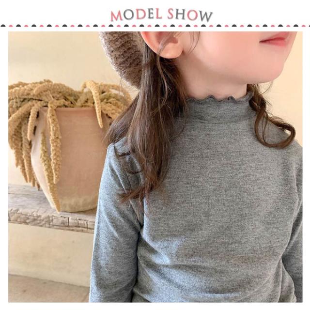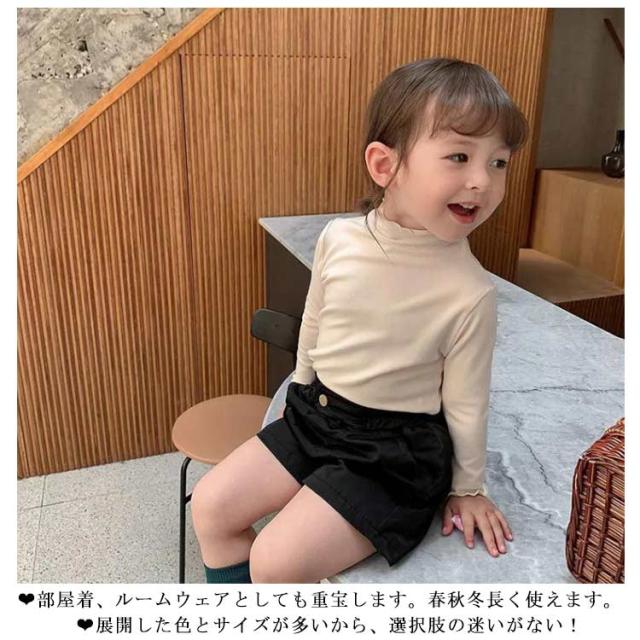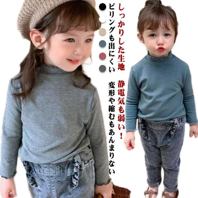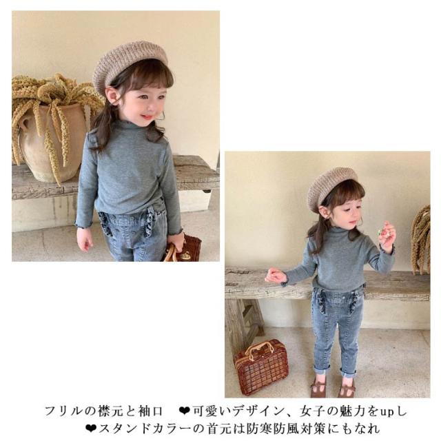 子供 Tシャツ 長袖 安い 女の子 ハイネック フリル襟 暖かい 防寒 保温 カットソー トップス フリルネック 肌着 無地 インナー 長袖Tシャツ 伸縮性 無地 秋服 春服 子供服 送料無料 90 100 110 120 130 140