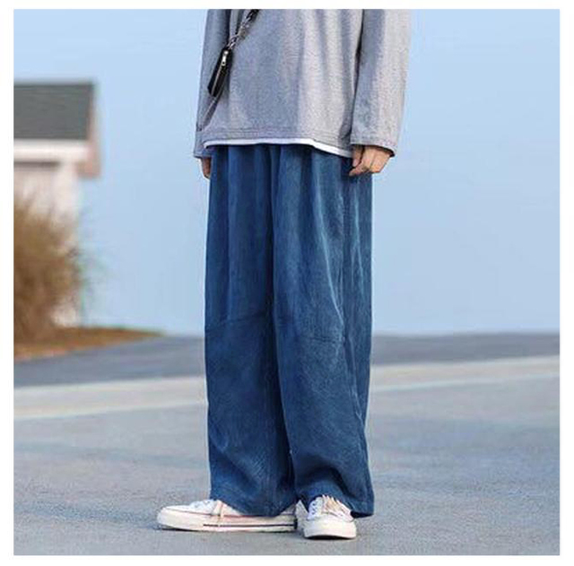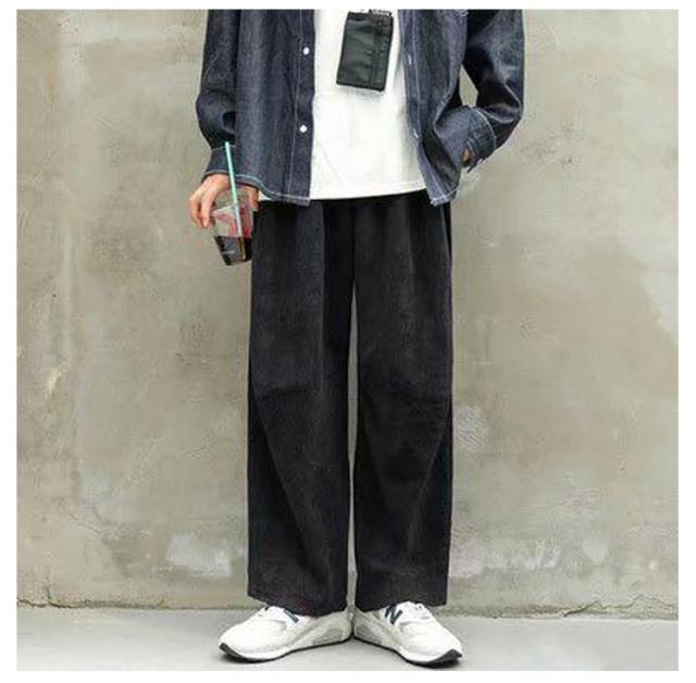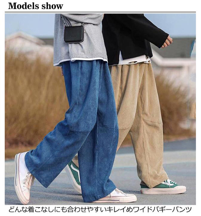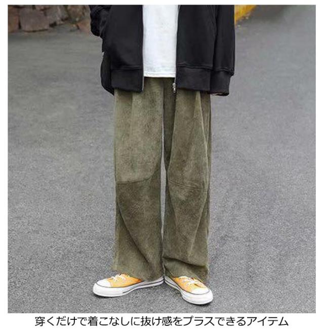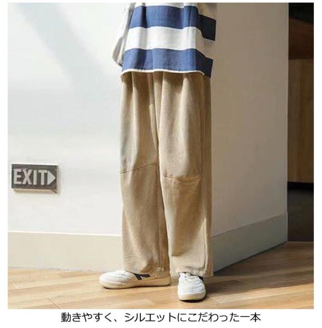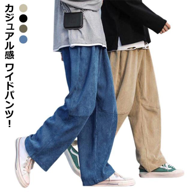 ワイドパンツ メンズ ズボン ワイド パンツ ゆったり ボトムス ゴムウエスト カジュアル コーデュロイ 無地 黒 ブルー カーキ M L LL XL 全4色 レディース ユニセックス 秋冬 秋服 秋物 冬服 冬物 暖かい