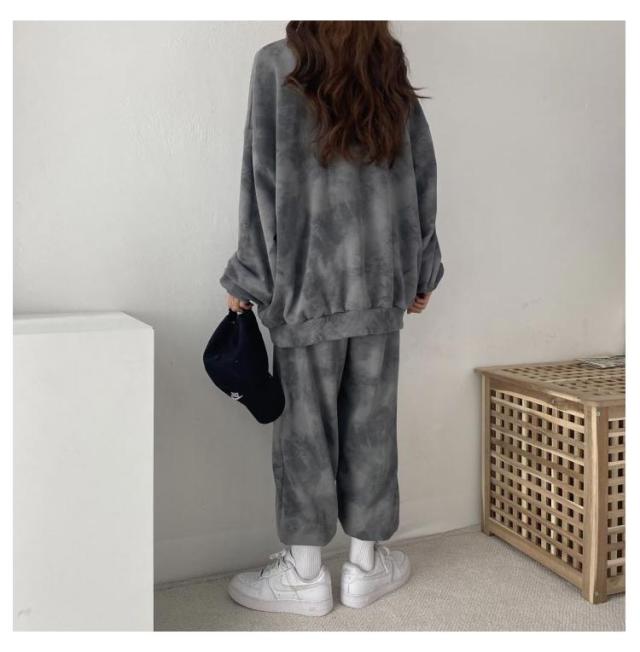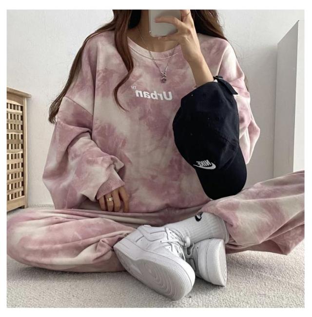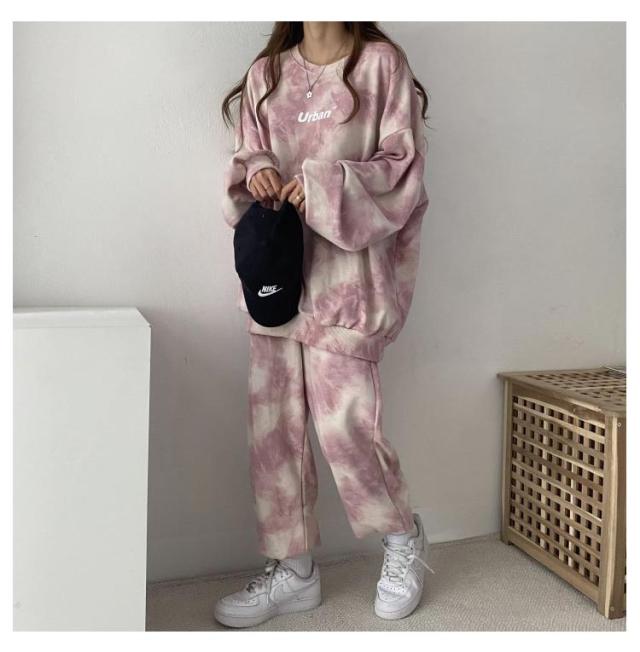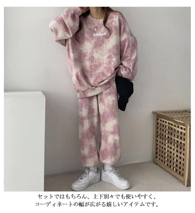 裏起毛 部屋着 ルームウェア 上下セット レディース タイダイ柄 秋 冬 長袖 トレーナー スウェットパンツ ロングパンツ ナイトウェア 寝巻き スポーツウエア ゆったり ジャージ ビッグシルエット パジャマ