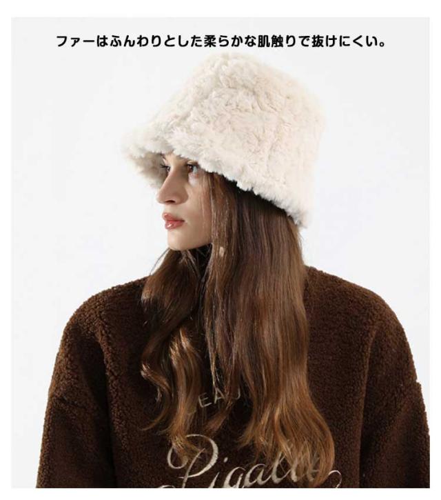 ファー バケットハット レディース 秋冬 ハット ファー 暖かい 防寒 軽量 帽子 ファーハット バケハ 厚手 短毛ファー ふわふわ モコモコ 保温性抜群 小顔効果 かわいい お洒落 送料無料