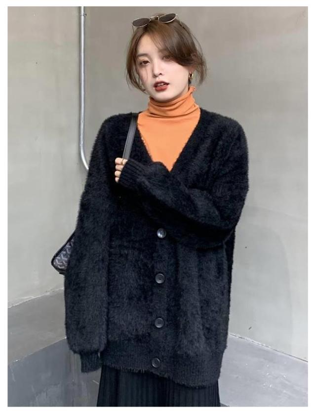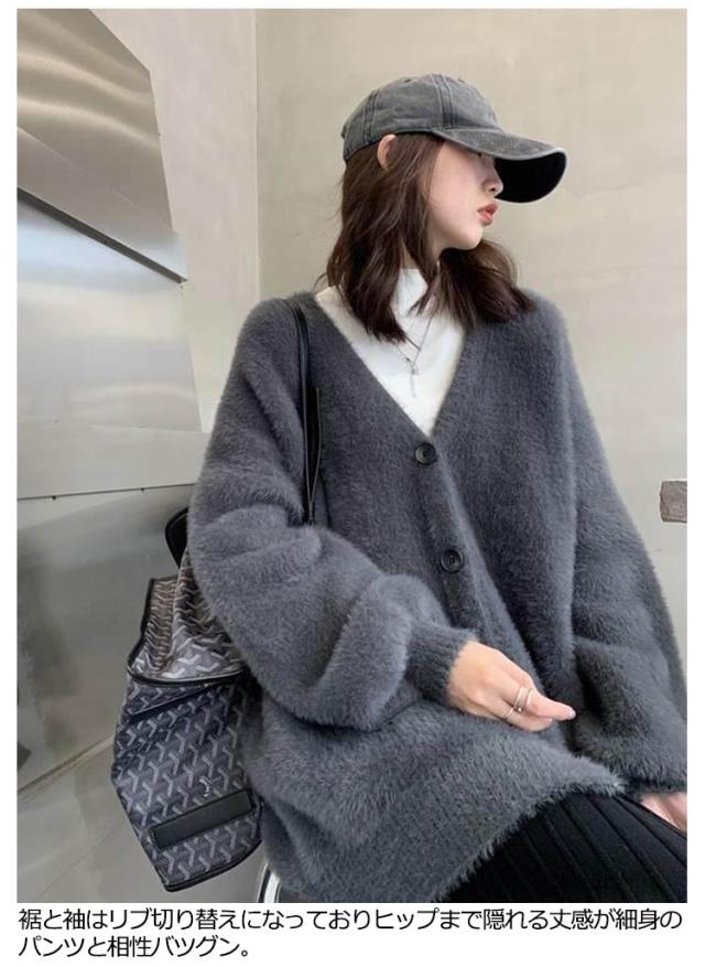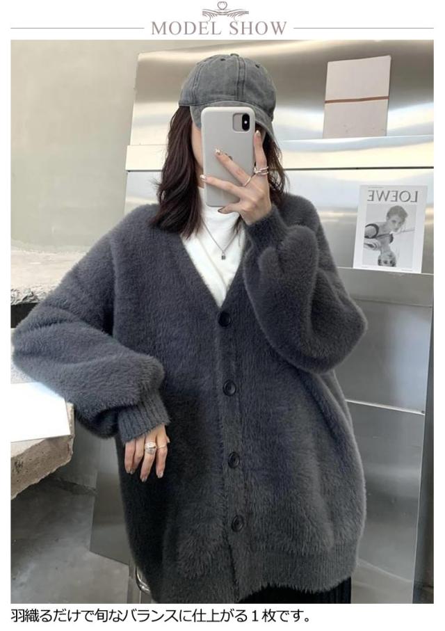 フェイクファー モコフワ カーディガン レディース ルーズシルエット 春 秋 冬 コーデ ふわふわ フワフワ ニット 長袖 おしゃれ 厚手 ファッション 着こなし カジュアル ブラック グレー ブルー オトナ 大人 かわいい トップス 送料無料