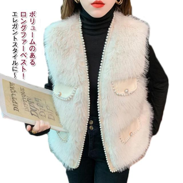 ファーベスト レディース フェイクファー ボアベスト ベスト ジレ ジャケット ファージャケット ロング ロングベスト 秋 冬 レイヤード 重ね着 羽織り 春 エコファー ふわふわ もこもこ 暖かい 韓国 大人 可愛い きれいめ 体型カバー ゆったり カジュアル 送料無料