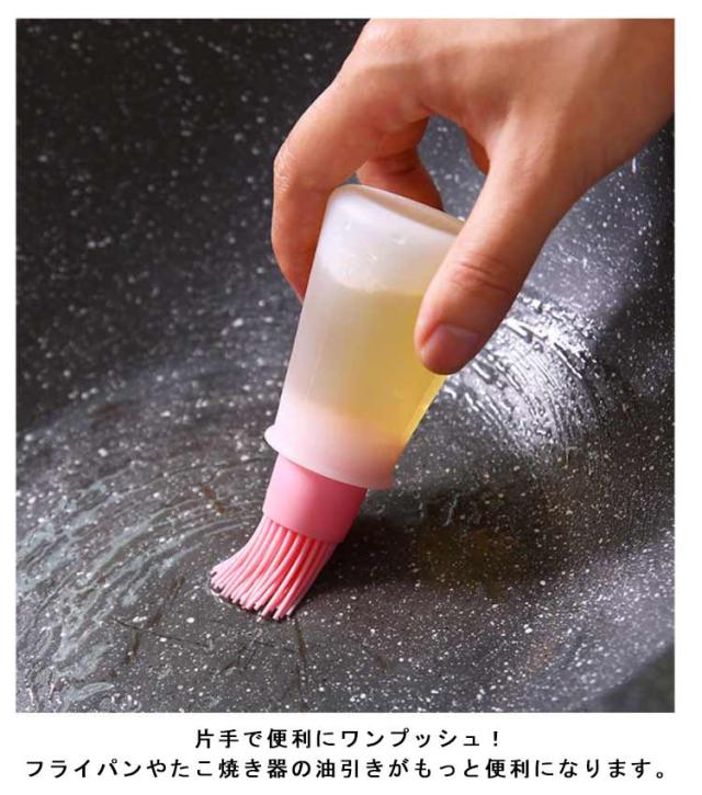 | グリップを押すと油が適量出てくる便利な油引きです。 やわらかいシリコーン製。手早く塗れるのでお料理もラクラクです。 醤油、ジャム、オイル、クリーム、ハチミツなどを簡単に入れることができます 片手で便利にワンプッシュ!フライパンやたこ焼き器の油引きがもっと便利になります。 | |