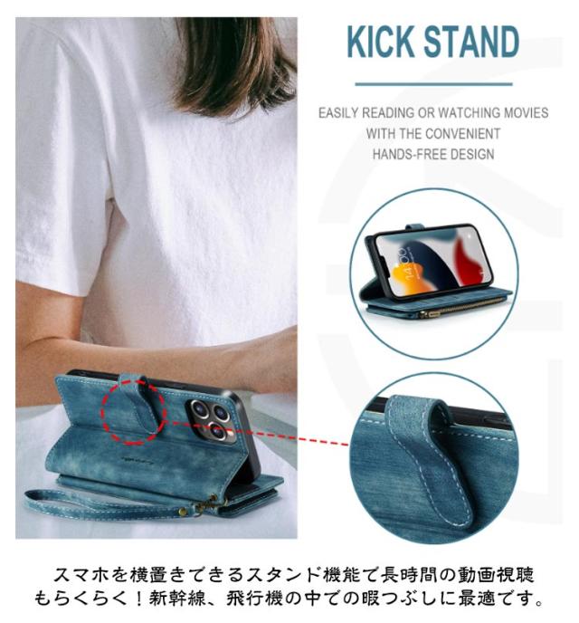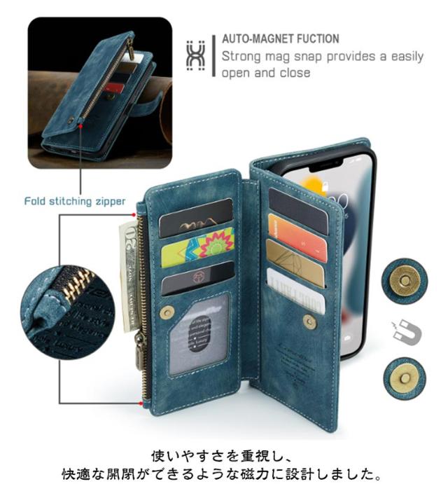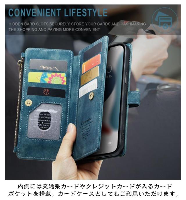 | 【対応機種】iPhone 【素材】PUレザー TPU 【セット内容】スマホケース(iPhone本体は同梱されておりません) 【特徴】 たっぷり収納できる手帳型ケースが登場しました。 内側には交通系カードやクレジットカードが入るカードポケットを搭載。カードケースとしてもご利用いただけます。 カード収納部分にはお札やレシートなどが収納できる大きめポケットが付いています。 それに、小銭やカギ、名刺などを収納できるジッパー付きポケットを用意。 お出かけ際に、これだけを持っていけば十分! スマホを横置きできるスタンド機能で長時間の動画視聴もらくらく!新幹線、飛行機の中での暇つぶしに最適です。 使いやすさを重視し、快適な開閉ができるような磁力に設計しました。 上品な質感のPUレザーを使用し、触り心地や耐久性も抜群。 カメラレンズ周囲の穴に段差を設けることによって、iPhoneの突出したレンズを保護。 通勤通学時に便利、合計10ヵ所のカードポケット付き。 ケースと同じ色のハンドストラップも付属。ストラップの取り付けがやすく、お気に入りストラップの変更も可能です。 | |