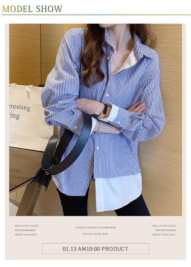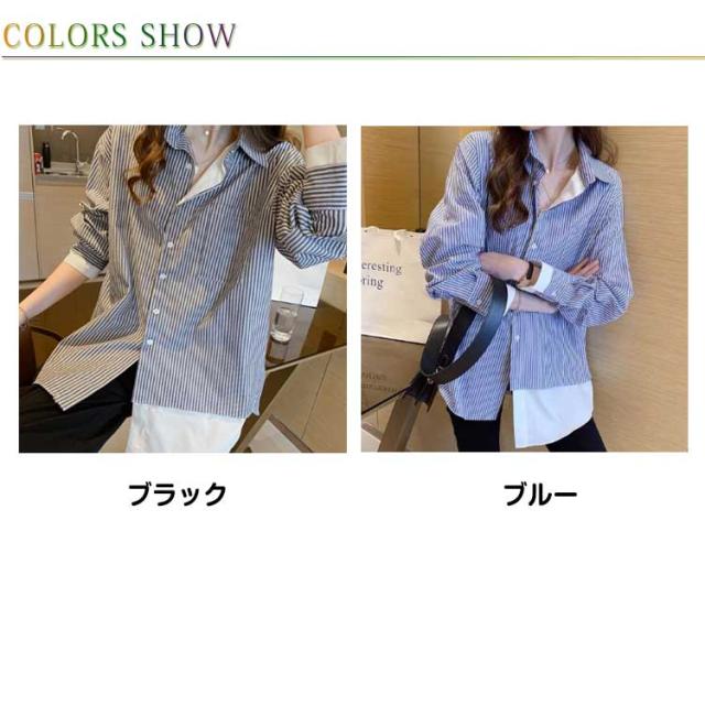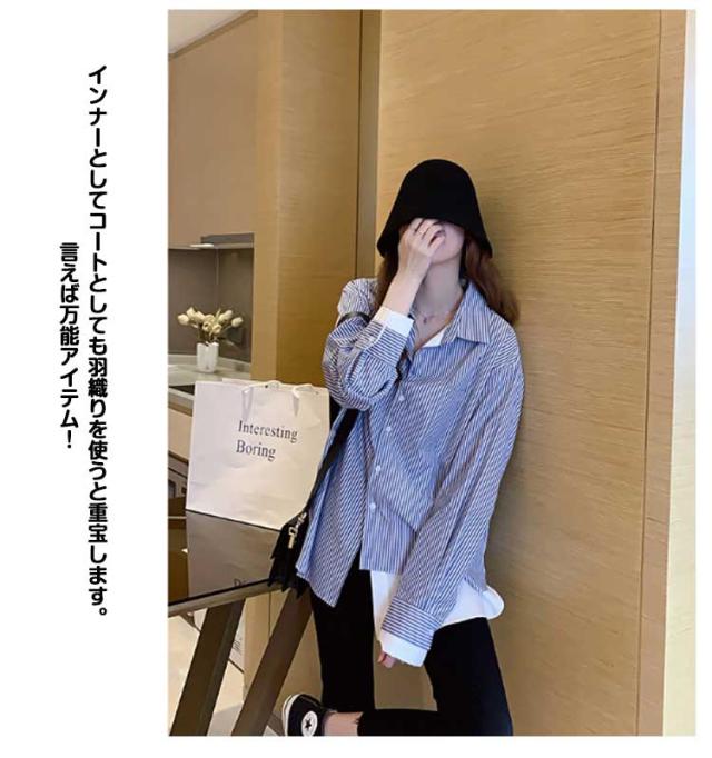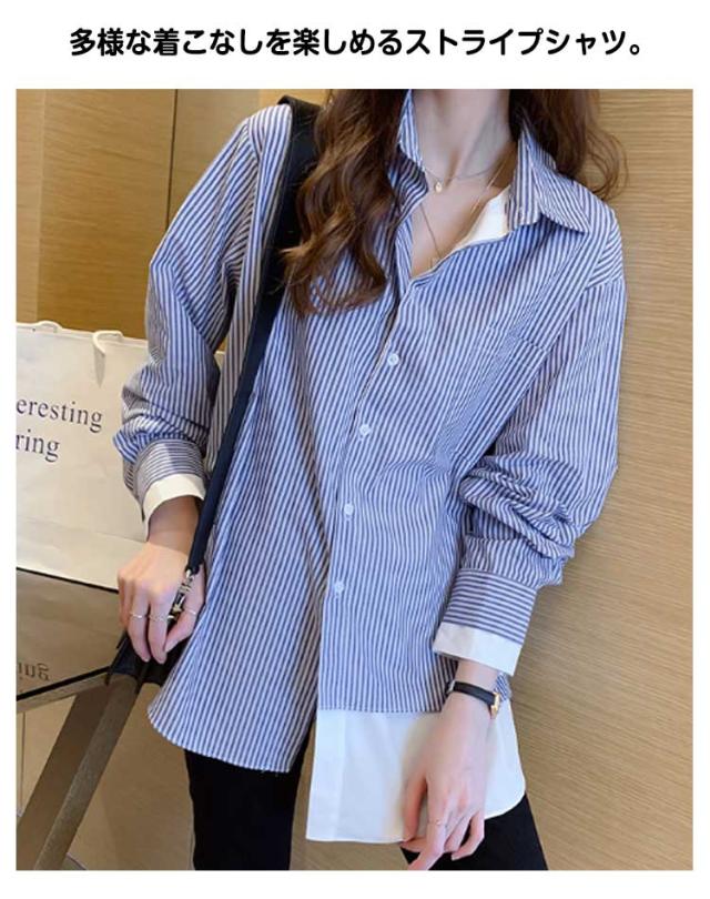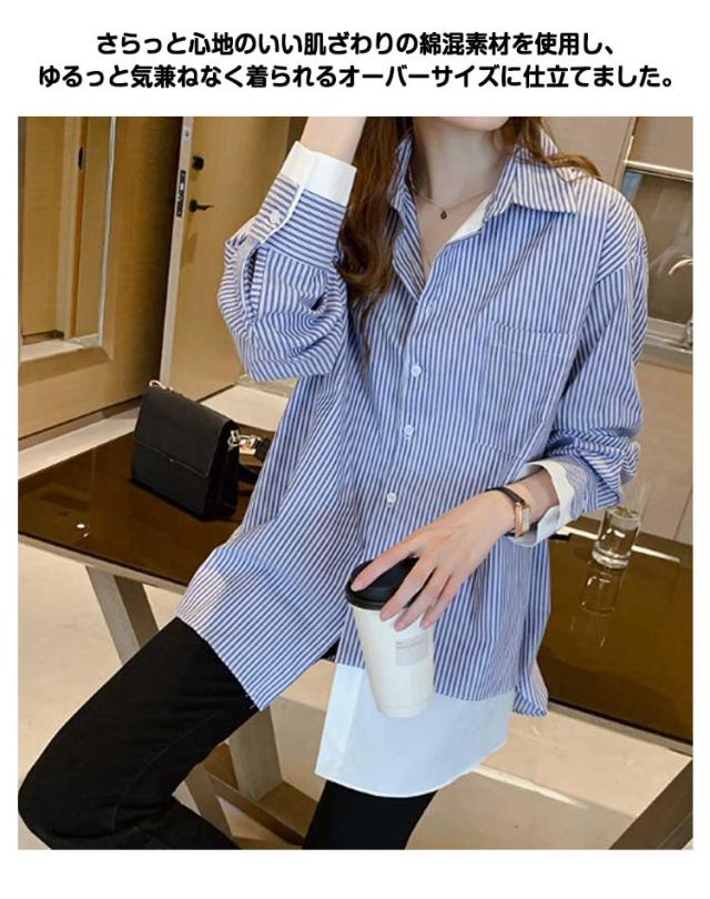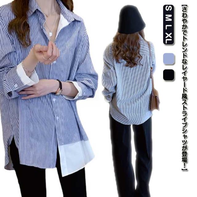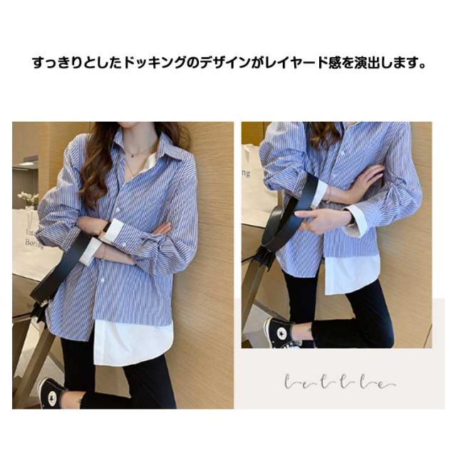 【S~XL】ストライプ シャツ 綿混 ピンストライプ ドッキング 長袖シャツ ストライプシャツ レディース 秋冬 トップス ブラウス 長袖 ゆったり 羽織 重ね着 レイヤード 韓国 おしゃれ 上品 シンプル 春 秋 冬 送料無料