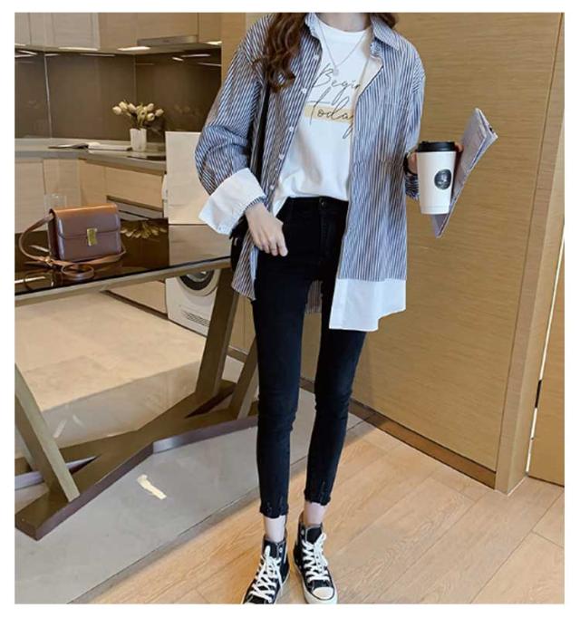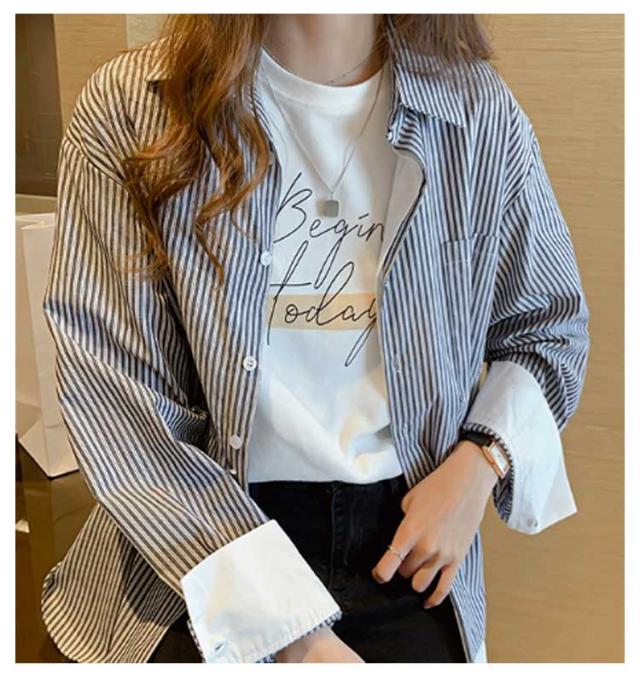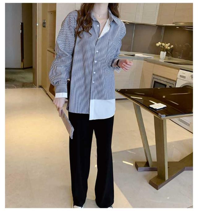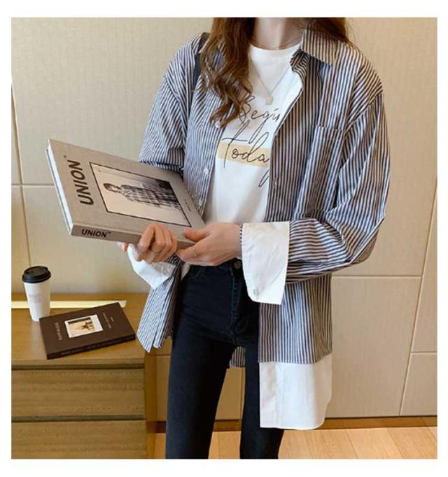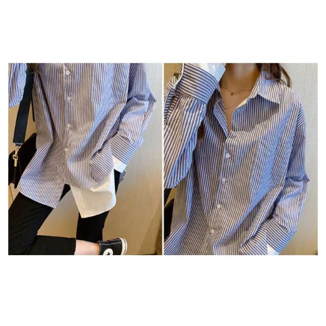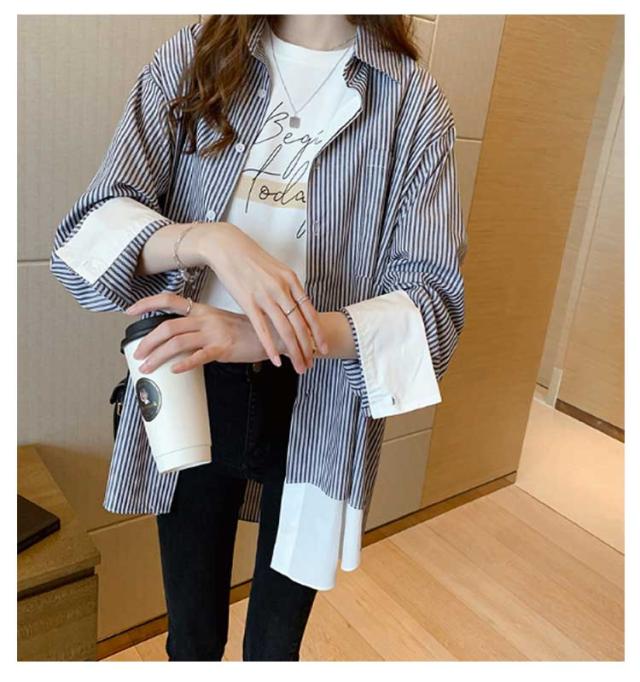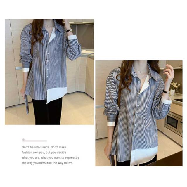 【S~XL】ストライプ シャツ 綿混 ピンストライプ ドッキング 長袖シャツ ストライプシャツ レディース 秋冬 トップス ブラウス 長袖 ゆったり 羽織 重ね着 レイヤード 韓国 おしゃれ 上品 シンプル 春 秋 冬 送料無料