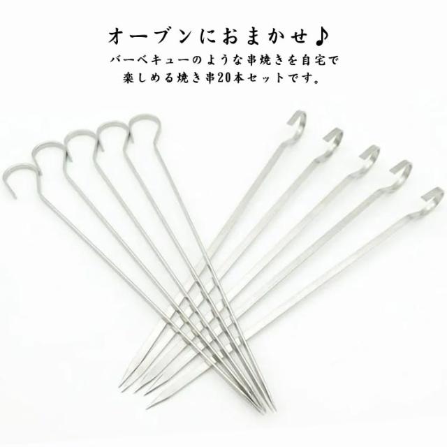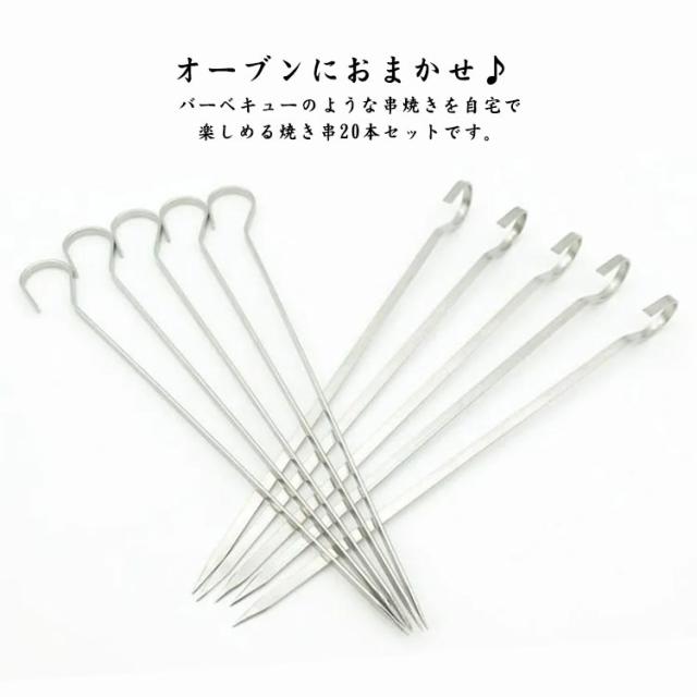 焼き串 20本組 オーブン用 串焼き ステンレス製 串 自宅 串焼き 焼き串 バーベキュー アウトドア キャンプ 焼き鳥串 バーベキュー串 くし 炭火焼 キッチンツール キッチン道具 料理道具 台所道具 調理グッズ 業務用 送料無料