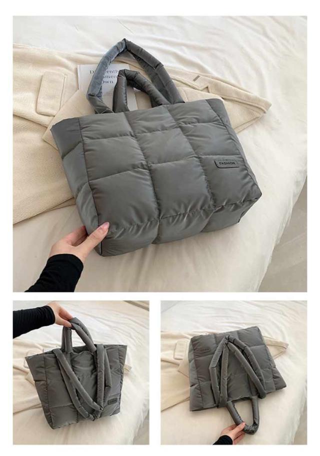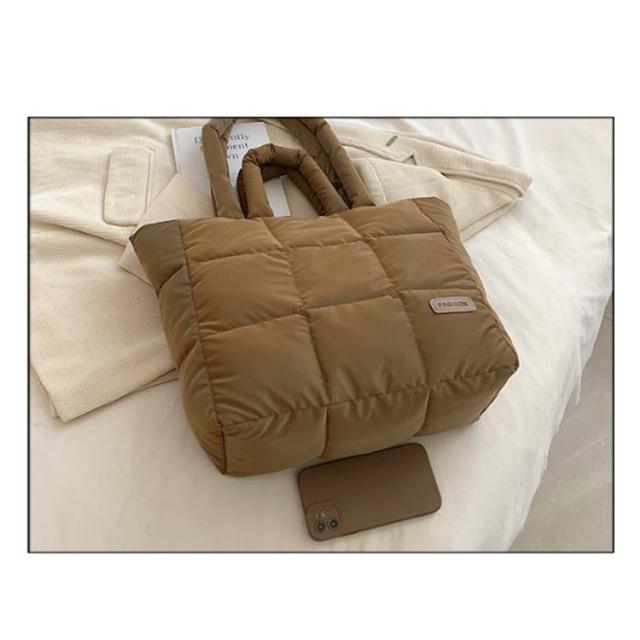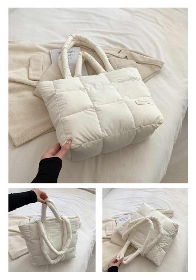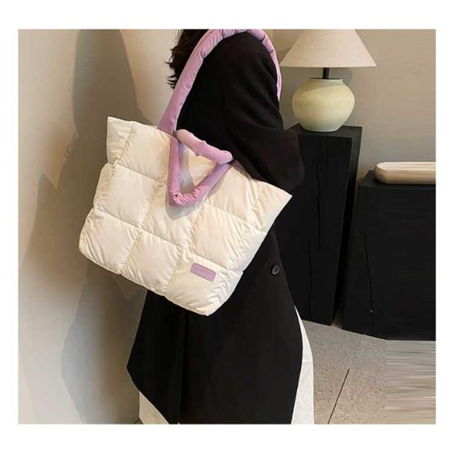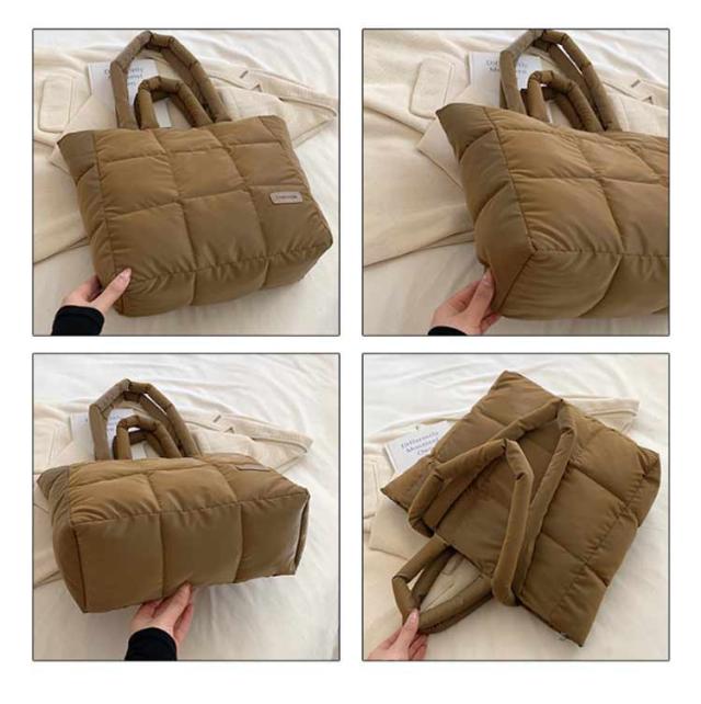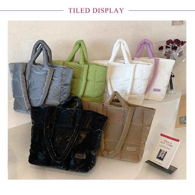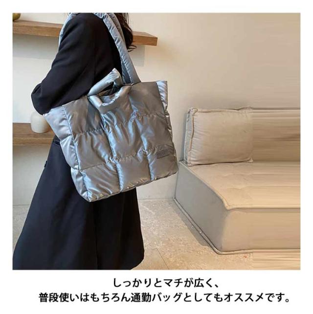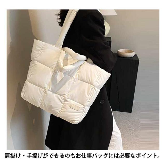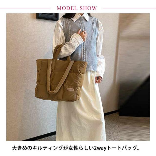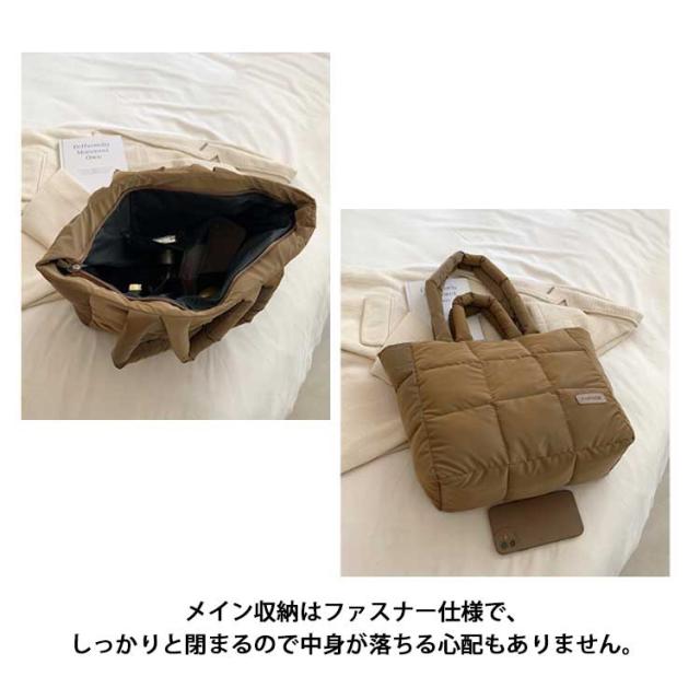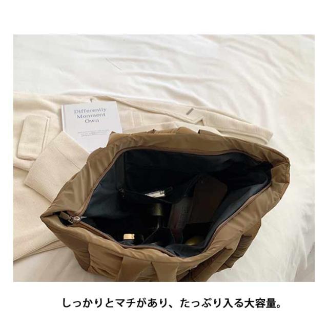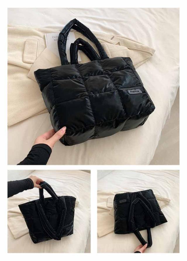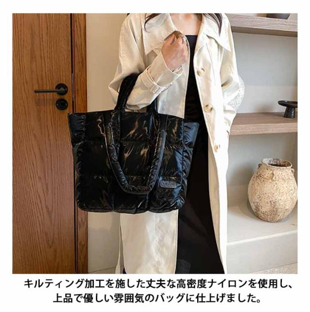 キルティング バッグ トートバッグ ナイロン 軽量 ファスナー付き ショルダーバッグ レディース 大きめ A4 大人 2WAY 大容量 通勤 通学 旅行バッグ マザーズバッグ ジムバッグ おしゃれ 肩掛け 上品 プレゼント ギフト シンプル 秋冬 手提げ ふわふわ ブラック 黒