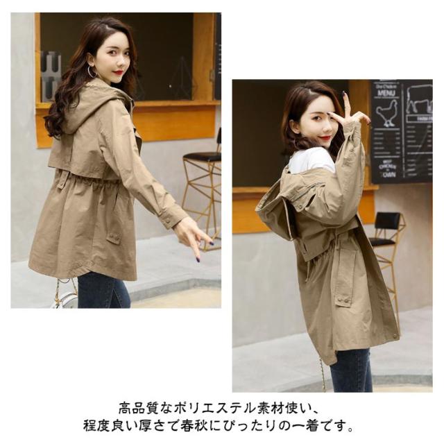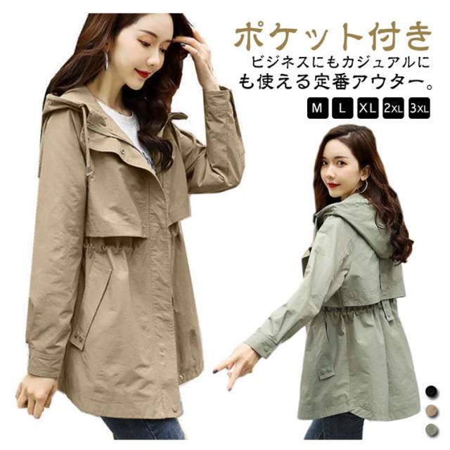 コート レディース トレンチコート フード付き カジュアルコート 裏地付き スプリングコート 春コート 秋 アウター キレイめ ゆったり 通勤 ポケット付き 防風 ブラウン ブラック グリーン