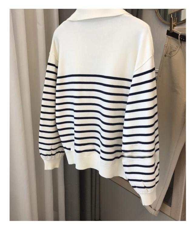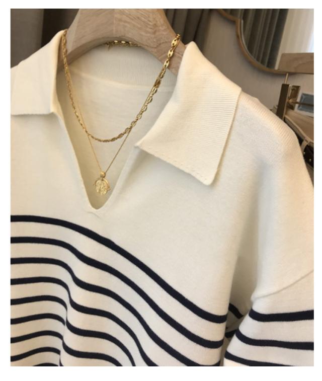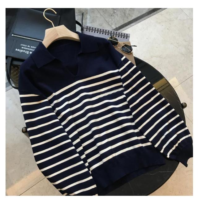 | 定番のボーダーニットポロ トラッド雰囲気の襟付きニット。 秋にピッタリな薄手ニット素材はチクチク感が無く着心地も◎ 程よいサイズ感にVネックラインのオープンカラーデザインで鎖骨が綺麗に見えて女性らしさアップ◎ 定番のボーダーデザイン、通勤着としてもちろん、普段着にも使いやすい1着です。 デニム、コットンパンツ、スカートなどいろんなボトムスとイージーマッチできオフィスからカジュアルまで着回し力抜群の一枚です。 | |