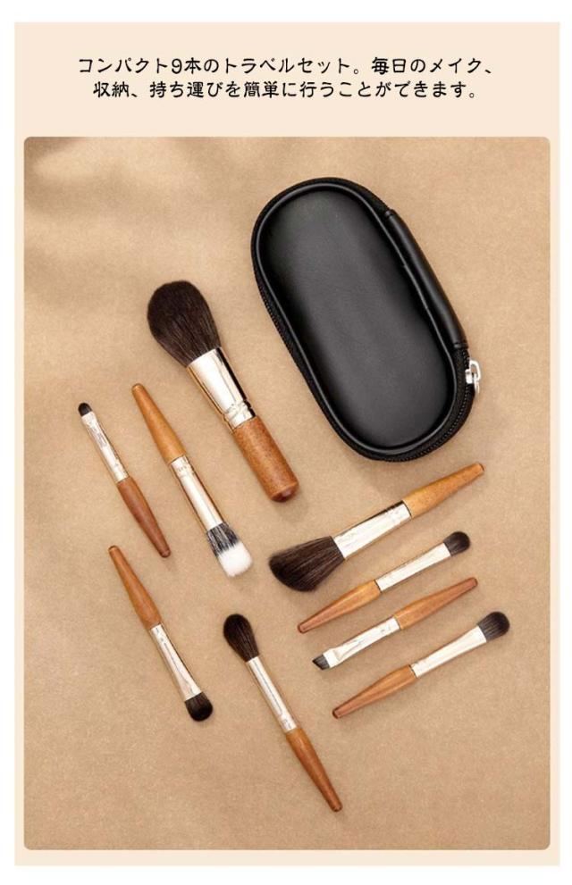 メイクブラシ セット 持ち運び 9本 化粧筆 セット 収納バッグ付き コンパクト 可愛い 大人 旅行 出張 メイクブラシセット 携帯用 短い パウダーブラシ フェイスブラシ メイクグッズ ケース付き 収納 化粧ブラシ ギフト プレゼント お手入れ簡単 送料無料 初心者