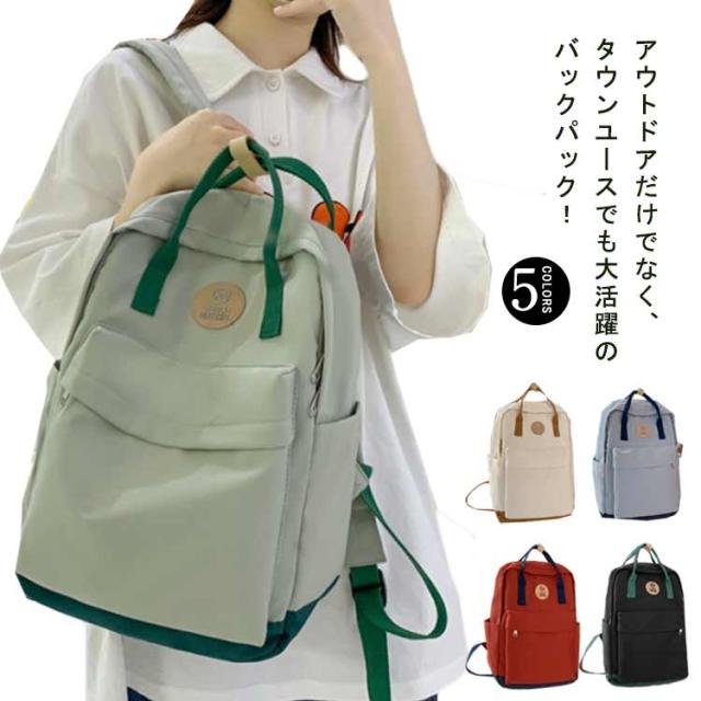 送料無料 リュック 通学 女子 韓国 大容量 高校生 バックパック おしゃれ リュックサック 中学生 多収納 ポケット ナイロン 撥水 はっ水 シンプル カジュアル かわいい 可愛い 背面ファスナー マザーズバッグ ママリュック 旅行