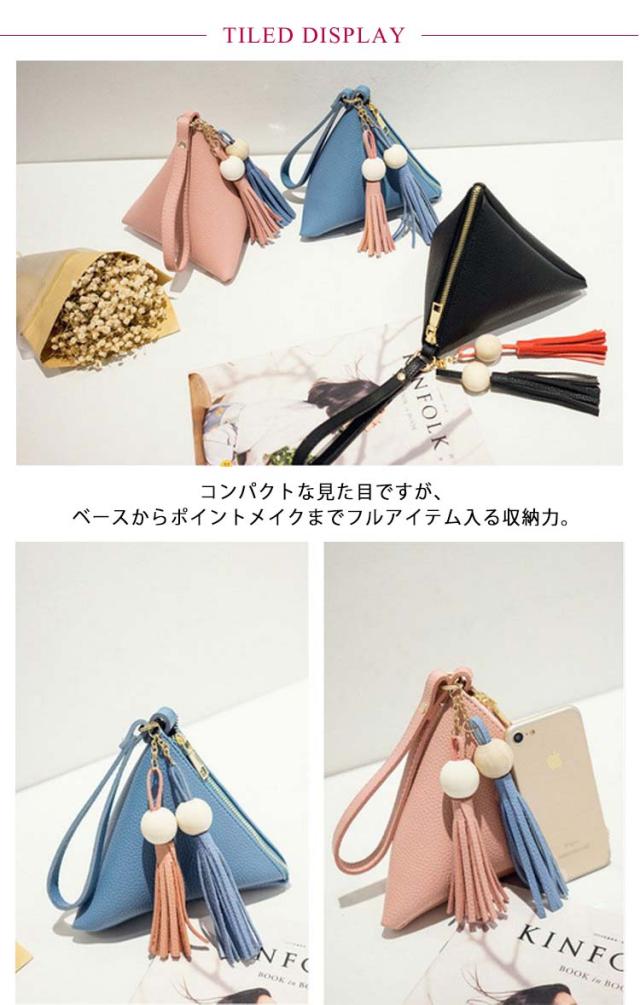 三角ポーチ ココスメポーチ 小物入れ コインケース 三角バッグ トライアングルポーチ バッグチャーム コスメ 化粧品 持ち運び 携帯 マチあり ミニバッグ 鞄 かばん ギフト クリスマス 送料無料 ピンク レッド ブラック ブルー グレー
