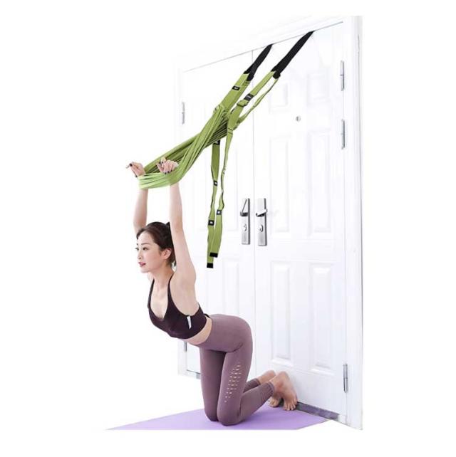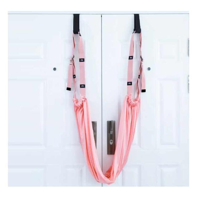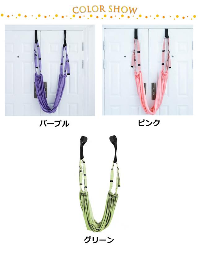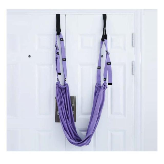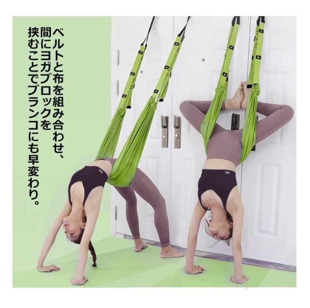 | 自宅のドアに取り付けできるエアリアルヨガ用ハンモックベルト。 ドアにアンカーを挟んで気軽に使用できるので、初心者にもおすすめです。 ベルトと布を組み合わせ、間にヨガブロックを挟むことでブランコにも早変わり。 ヨガだけではなくお子様の遊びやご高齢の方のストレッチ補助としても使用できます。 | |