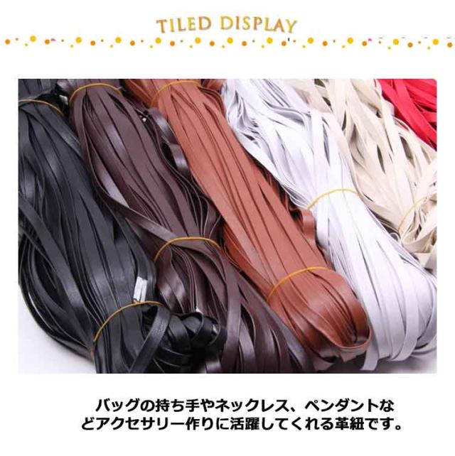 | 柔らかくしなやかな平革紐です。【幅3mm/4mm 全長100m】 バッグの持ち手やネックレス、ペンダントなどアクセサリー作りに活躍してくれる革紐です。 | |