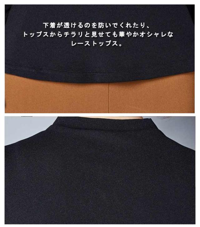 | 下着が透けるのを防いでくれたり、トップスからチラリと見せても華やかオシャレなレーストップス。 胸元と袖の上品なレースが印象的。ちらっと覗かせるだけでコーデが一気に華やかに。 伸縮性に優れたストレッチ機能で動きやすく、ストレスフリーな着心地。 幅広い年代の方に着ていただけるなシルエットです。 肌触りの良い素材で、季節問わずオールシーズン大活躍します。 トップスとしてはもちろん、インナーとして重ね着してちらっと見せするのもおすすめ。 | |