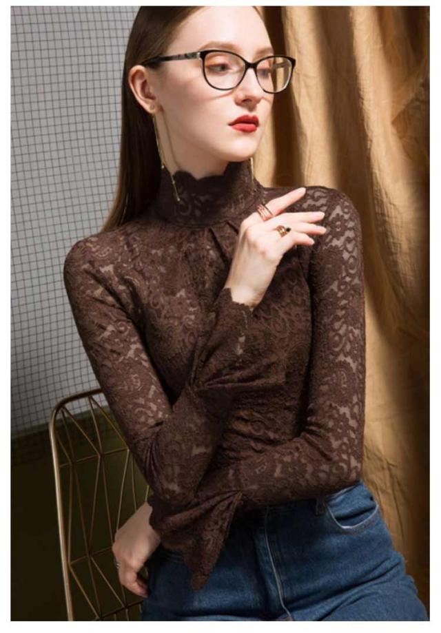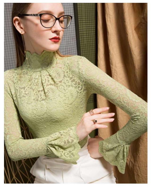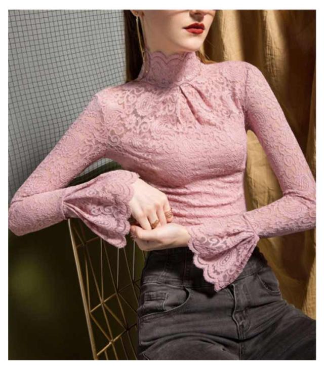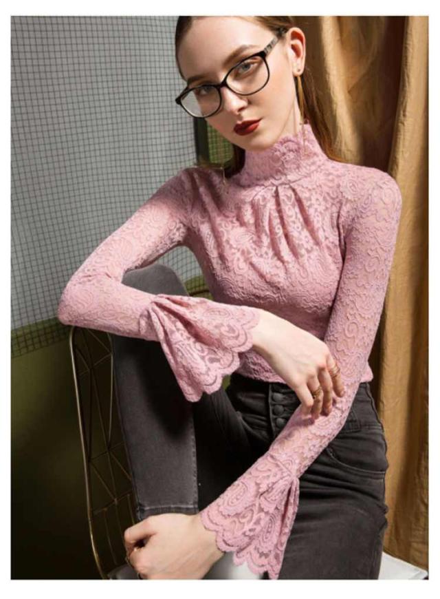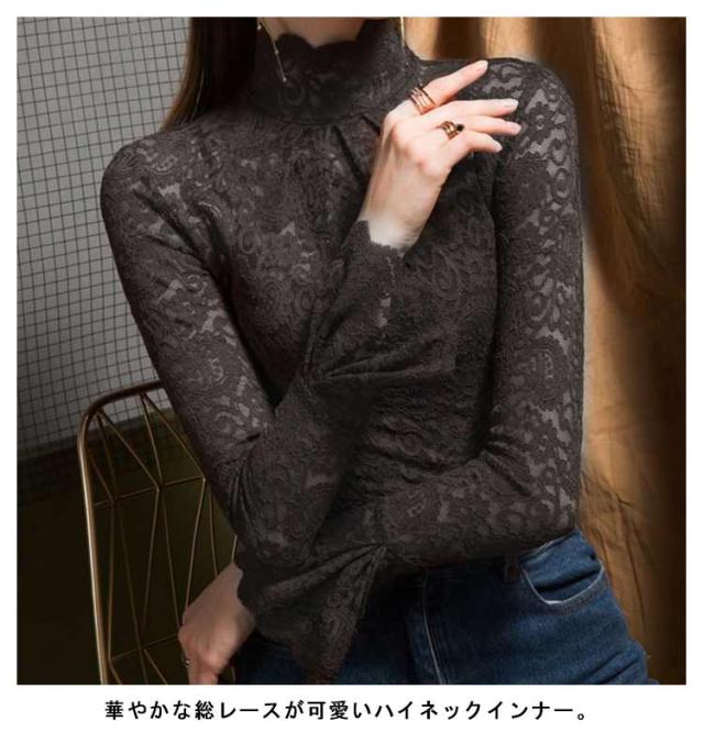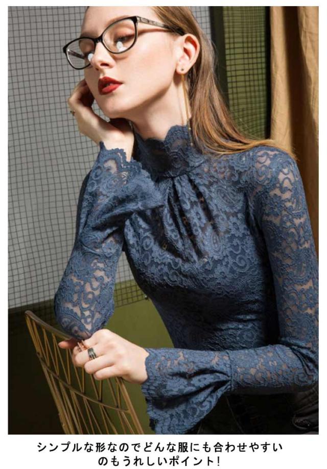 レーストップス 長袖 レディース レース シアートップス モックネック ボトルネック 長袖カットソー 長袖tシャツ ロンT シースルー 透け感 フレア袖 レイヤード インナートップス コーデ 重ね着 韓国 きれいめ 大人 可愛い 裏起毛と薄手2タイプ 【送無】