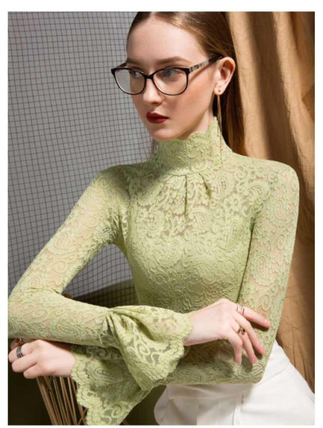 | 華やかな総レースが可愛いハイネックインナー。 シアーな透け感が女性らしい1枚。 手元に向かって優雅なフレアスリーブデザインです。動くたび手元を華やかにし、より女性らしい印象を与えてくれます。 ニットやスウェット、ワンピースなどの下にレイヤードすると今年らしいスタイリングに。 シンプルな形なのでどんな服にも合わせやすいのもうれしいポイント! フェミニンな雰囲気のレース素材ロングスリーブブラウスです。 | |