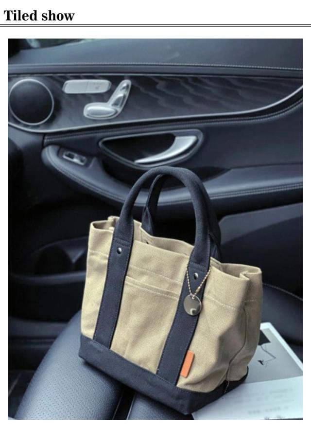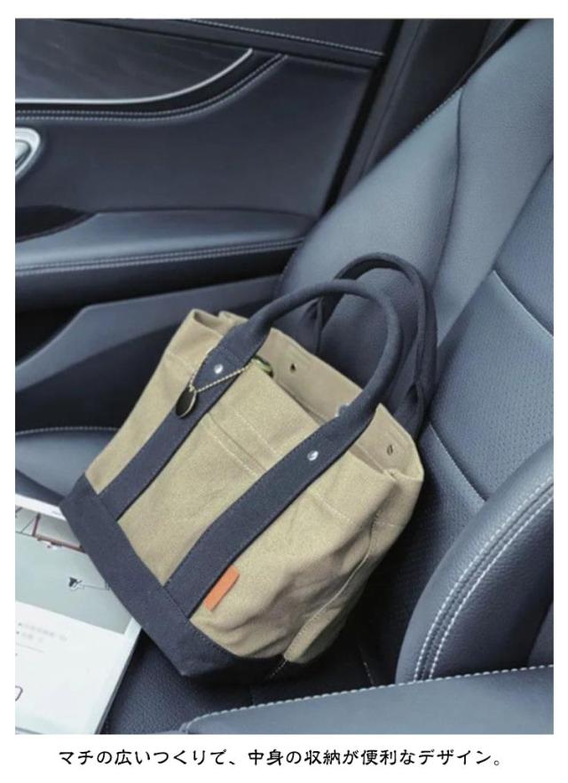 | 2層に仕切られた収納スぺ一スが便利なキャンバスミ二ト一ト。 マチの広いつくりで、中身の収納が便利なデザイン。 使やすい小さめのサイズ感ですが、一番広い収納スぺ-スには長財布や折り畳み傘、厚みのあるポ一チなども収納OK 型崩れしにくし厚めのキャンノじス生地に加え、持ち手部分はさらに安定感のある厚めの生地を重ねて持ちやすく仕上げました。 | |
