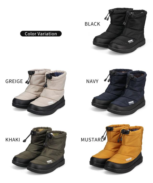 moz モズ スノーブーツ レディース 滑らない 防水 防滑 防寒 ショート 防寒ブーツ ダウンブーツ ウィンターブーツ ショートブーツ ボア 軽量 軽い あったか おしゃれ ジュニア シューズ 靴 秋 冬 ナイロン 黒 ブラック グレージュ ネイビー カーキ 7000
