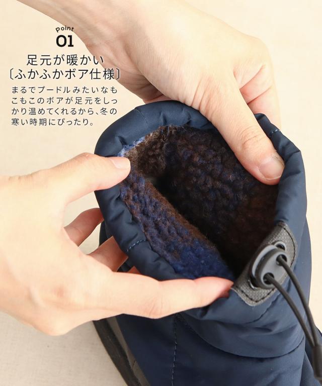 ライニングからインソールまでたっぷりのボアを使い、足を包んでふわふわあったか。