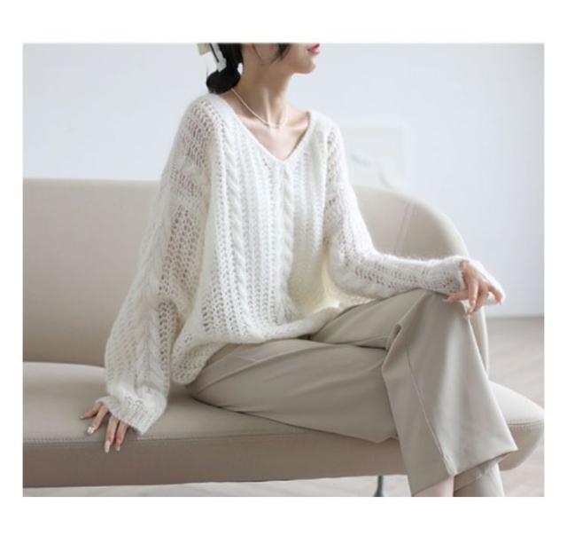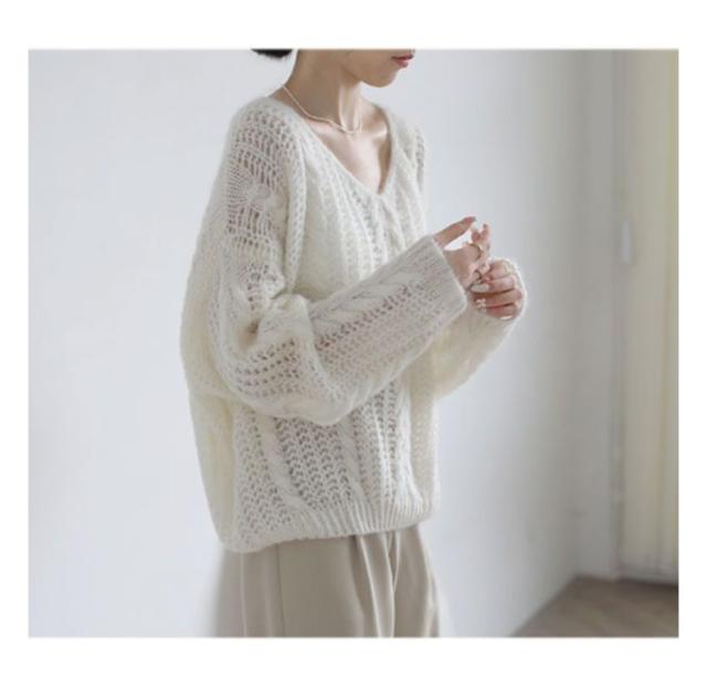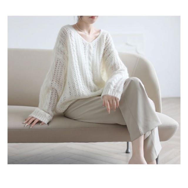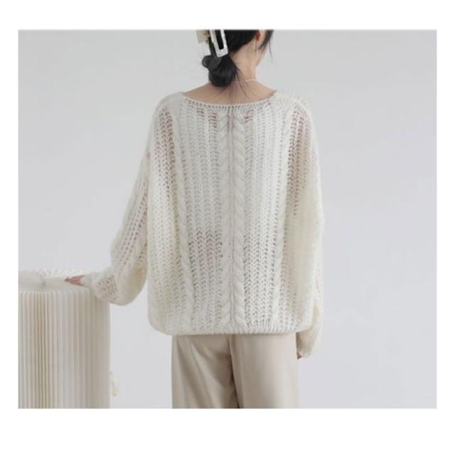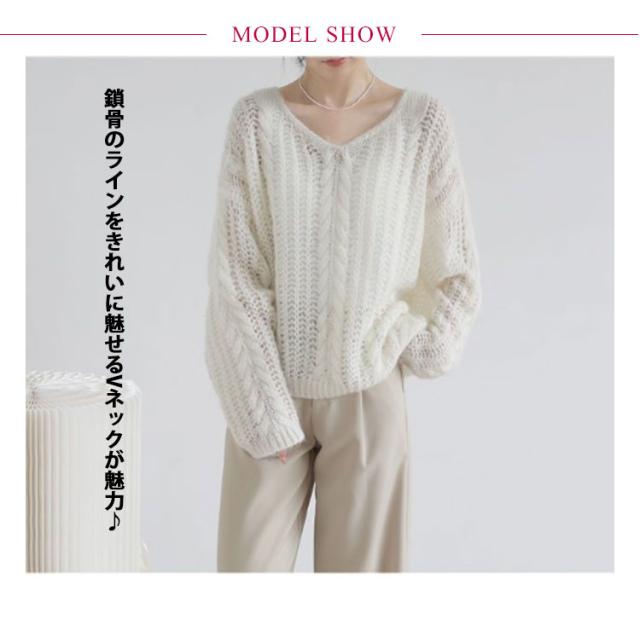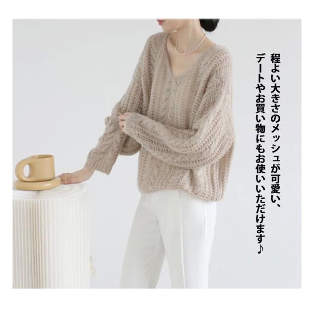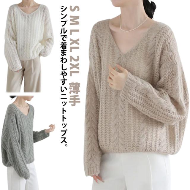 ニット レディース 秋 トップス 透かし編み 長袖 春秋 セーター ゆったり Vネック 肌見せ レイヤード シアー 薄手 プルオーバー 体型カバー シンプル カジュアル 通勤 20代 30代 40代 OL ママ 母