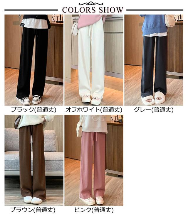 裏起毛パンツ ストレートパンツ レディース ロングパンツ ポケットあり リブパンツ ワイドパンツ コーデュロイ 低身長 高身長 ウェストゴム イージーパンツ ボトムス 大きいサイズ 厚手 暖かい 秋 冬