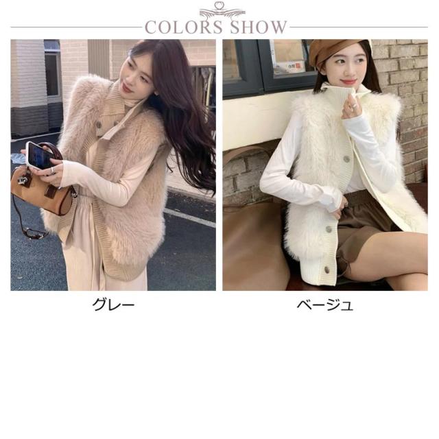ベスト レディース 秋冬 コーデ ファーベスト フェイクファー ベスト エコ ファー ベスト ショート ファージャケット ショート丈 ノーカラージャケット レイヤード 重ね着 秋 冬 春 羽織り アウター ふわふわ もこもこ 韓国 きれいめ カジュアル 送料無料