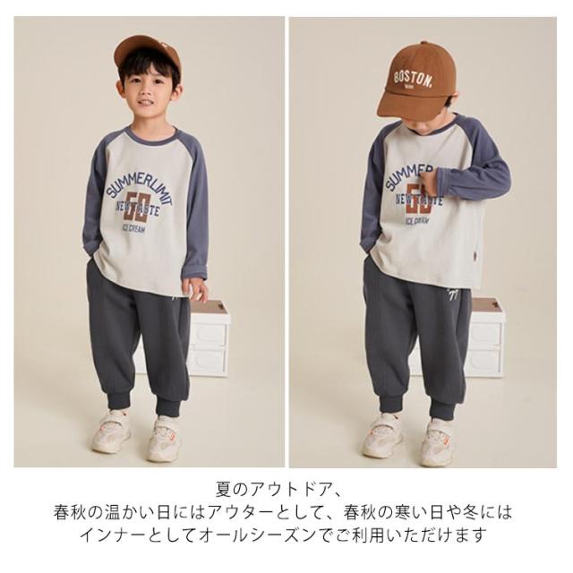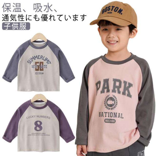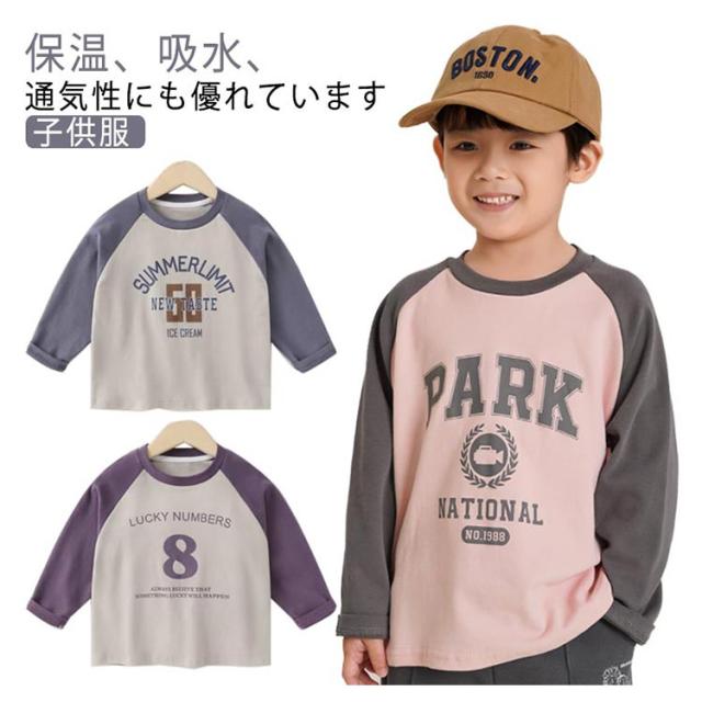 長袖Tシャツ ロンT 子供服 キッズ プリント袖リブ 長袖Tシャツ ベビー 男の子 女の子 綿 子ども服 ロングTシャツ ロング丈 保育園 幼稚園 小学生 キッズ フライスロンT ロンT 男の子 女の子 子供服 Tシャツ 長袖 コットン 薄手