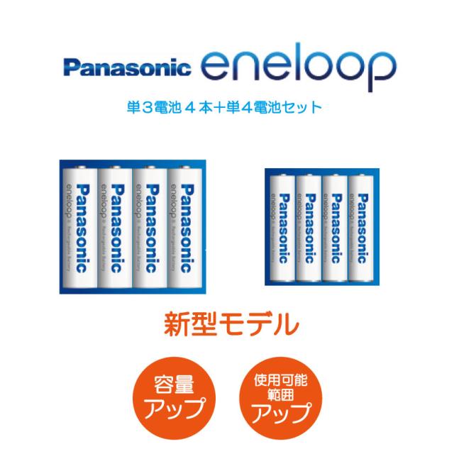 【新型モデル】エネループ 電池2種 単3形4本 単4形4本 パナソニック スタンダードモデル 充電池 Panasonic eneloop エボルタ 水素電池 繰り返し使える 単三電池 単四電池