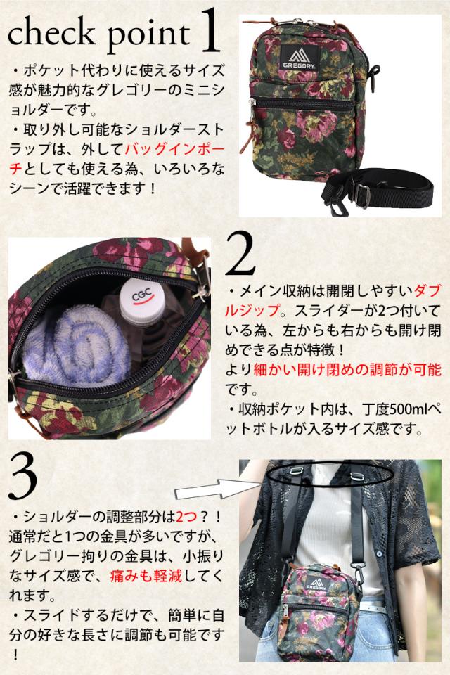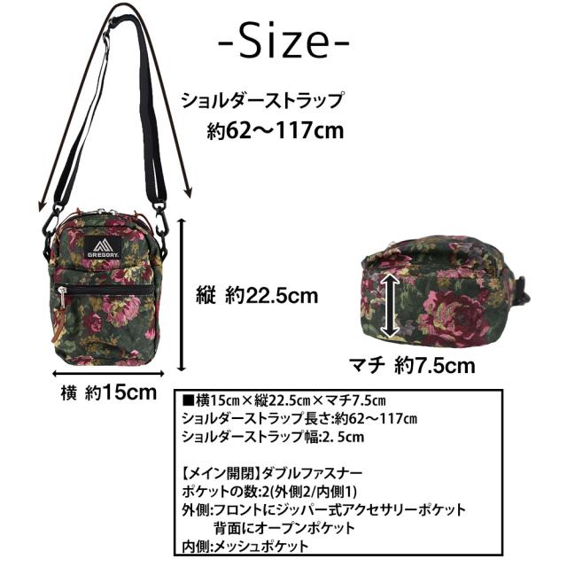 | 備考 | ・ジッパー開閉のメインコンパートメント ・長さ調節可能な25mmショルダーストラップ ・グレゴリー定番のレザージッパープル ・フロントにジッパー式アクセサリーポケット ・背面にオープンポケット ・ポケットの数:3(外側2/内側1) キーワード: プレゼント ギフト ラッピング ラッピング無料 メンズ レディース 男性 女性 通勤 通学 ビジネス 学生 ブランド ポイント消化 ニューバッグワカマツ | ||
