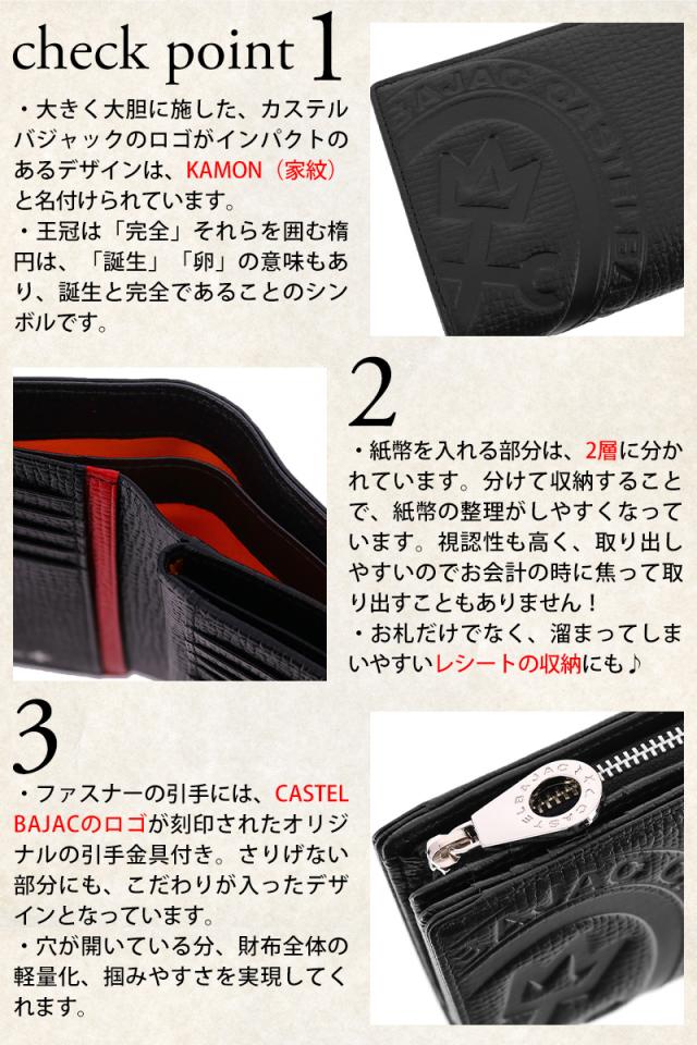| 備考 | 色鮮やかでキャッチーなデザインのピッコロシリーズ 【収納】 ・カード収納枚数×10 ・フリーポケット×3 ・札入れ×2 ・小銭入れ×2 ・ファスナーの引手にはCASTELBAJACのロゴが刻印されたオリジナルの引手金具を使用。 ・型押し牛革を使用した小物シリーズ ・傷がついても目立ちにくく、ヘビーユーズ出来る素材 ・外装には大きく目立つ家紋のデザイン ・内側はブランドロゴが散りばめられたオリジナルパターンの素押しでさりげなくかわいい キーワード:プレゼント ギフト ラッピング ラッピング無料 メンズ レディース 男性 女性 通勤 通学 ビジネス 学生 ブランド 本革 牛革 ポイント消化 カジュアル ニューバッグワカマツ | ||