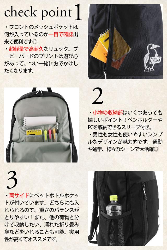 商品:チャムス バッグ リュックサック デイパック バックパック B4 A4 B5 CHUMS イージーゴーバックパック ch60-3518 メンズ レディース