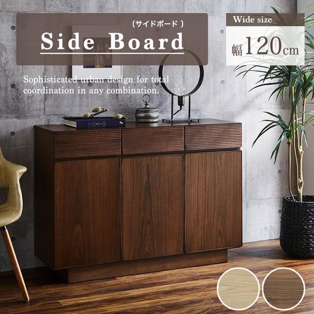 サイドボード 幅120cm 2色対応 完成品 サイドチェスト キャビネット 木製ラック 収納ラック 収納棚 引出し収納 リビング収納 リビングボード 木製 チェスト ラック 小物収納 可動棚 3段 おしゃれ 北欧 シンプル