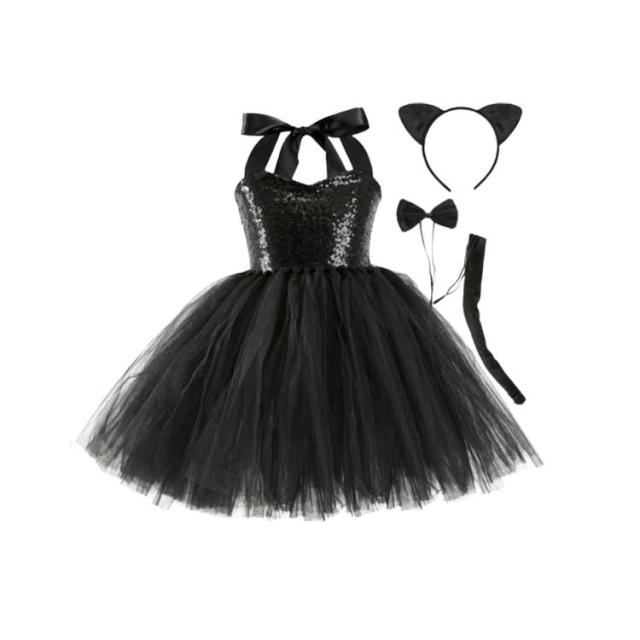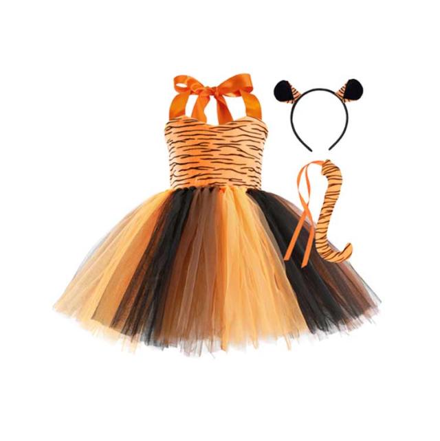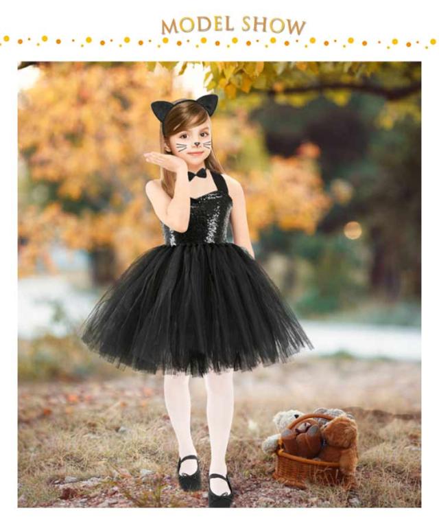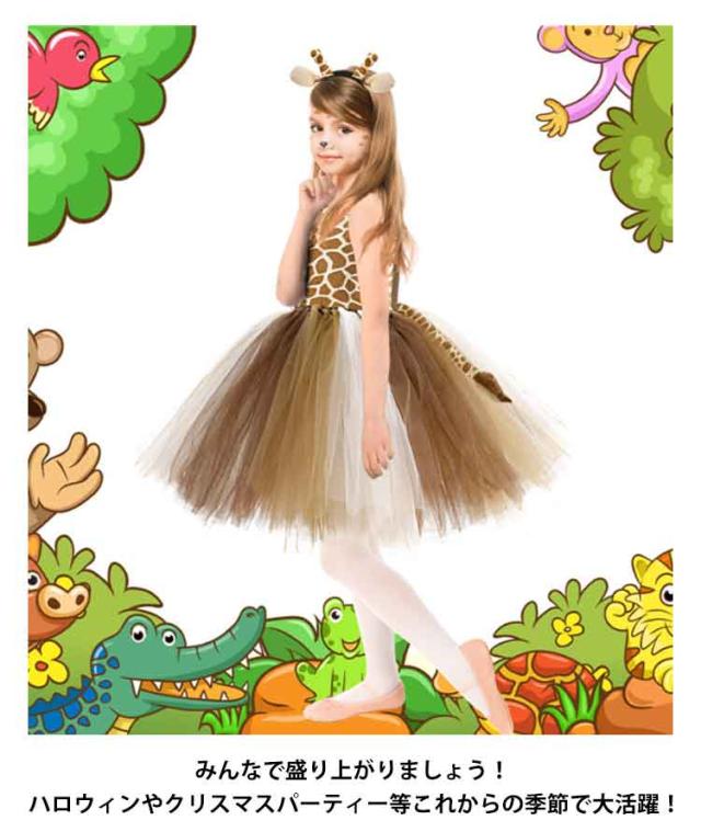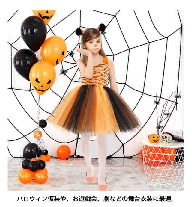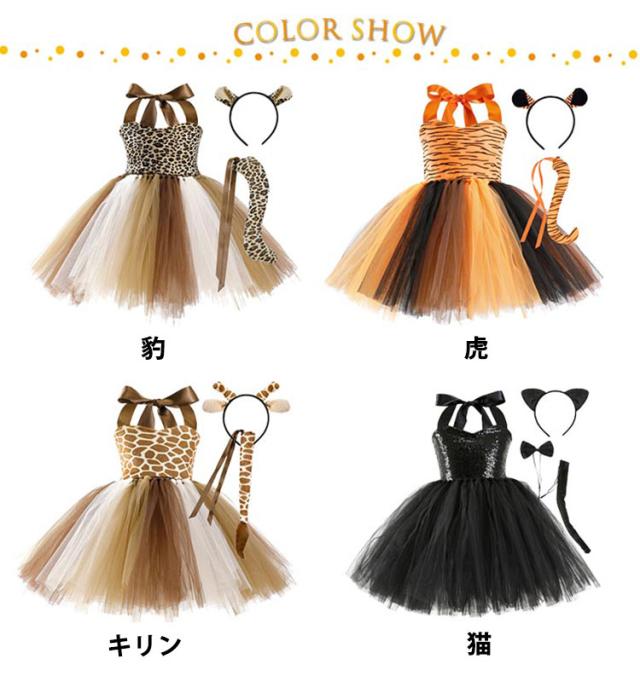 ハロウィン 衣装 子供 女の子 コスプレ 黒猫 子どもコスチューム キッズ ワンピース 猫耳 チュールワンピース コスプレ衣装 可愛い 変装 仮装 耳付き ハロウィンパーティー イベント キリン 虎 豹 舞台劇 舞台衣装 学園祭