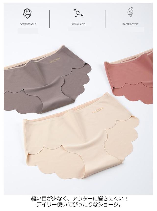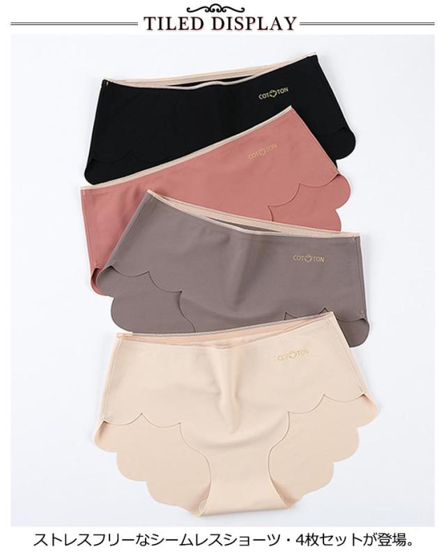シームレス ショーツ レディース シームレスパンツ 4枚組 ノーライン シルク配合 ひびかない 浅履き スカラップ ラインが出ない インナー オールシーズン 大きいサイズ くすみカラー パンティー ランジェリー 上品
