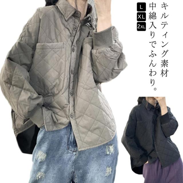 キルティングコート レディース 秋 冬 春 キルティング コート ジャケット アウター 中綿 ロングコート 中綿 コート キルトジャケット 大きいサイズ L/XL/2XL ブラック グレー 黒 灰 送料無料