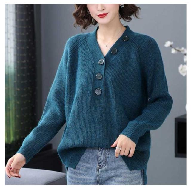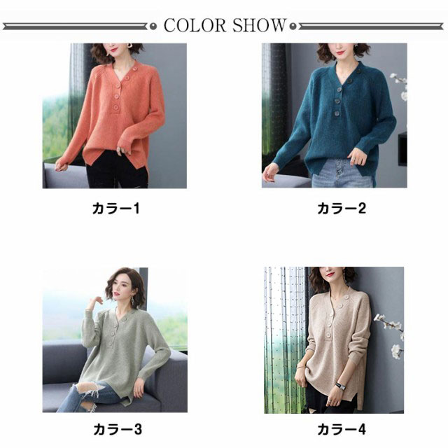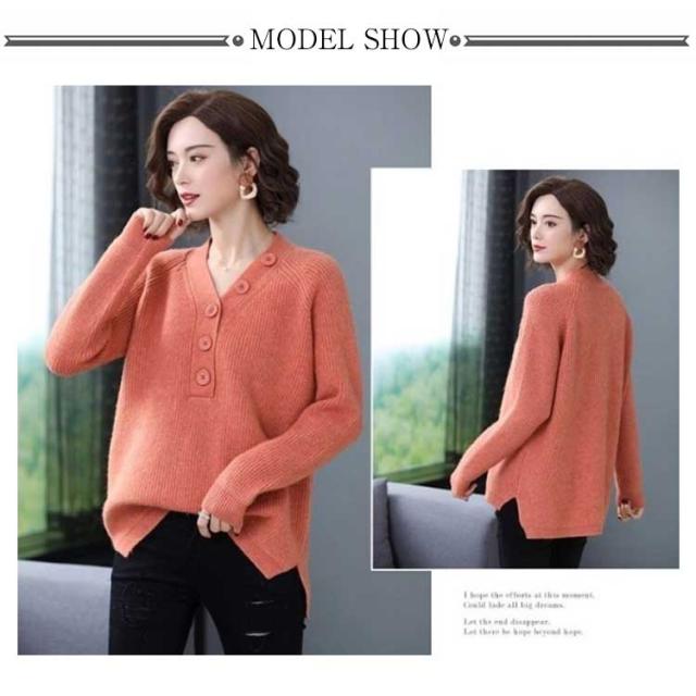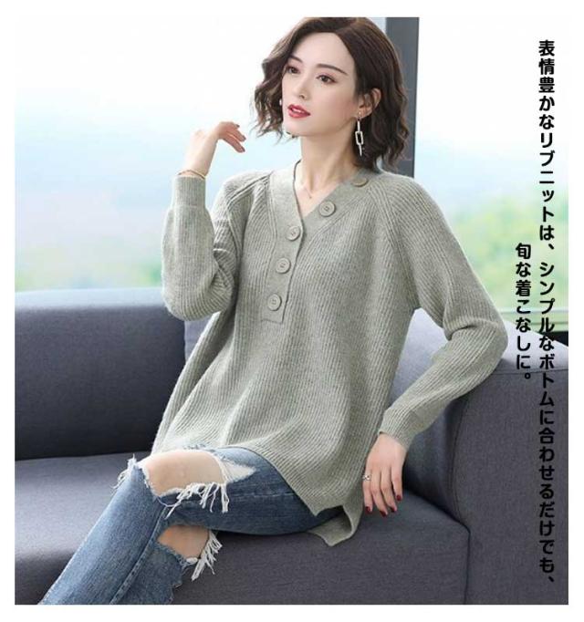 ニット セーター 飾りボタン付き Vネック リブ ニット 長袖 レディース トップス Vネックニット マーブルボタン ニットセーター 長袖 プルオーバー ドロップショルダー ゆったり 柔らか しっとり 送料無料 秋冬 韓国ファッション