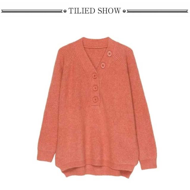 | 前ボタン付きがポイントのゆるニット。 大きめのVネックデザインだからすっきりとした顔周りらしさに 。 ドロップショルダーのルーズな落ち感も可愛いシルエを作るポイント。 全体的にはルーズのシルエットでさりげなく体型カバーできます。 柔らかく通気性に優れたライトニット素材を採用しました。 袖口のサイズ感にもこだわり、袖をプッシュアップした際もこなれ感のあるシルエットを描きます。 表情豊かなリブニットは、シンプルなボトムに合わせるだけでも、旬な着こなしに。 ふっくらとした風合いで、秋から冬まで長くコーディネートを楽しんでいただけます。 | |