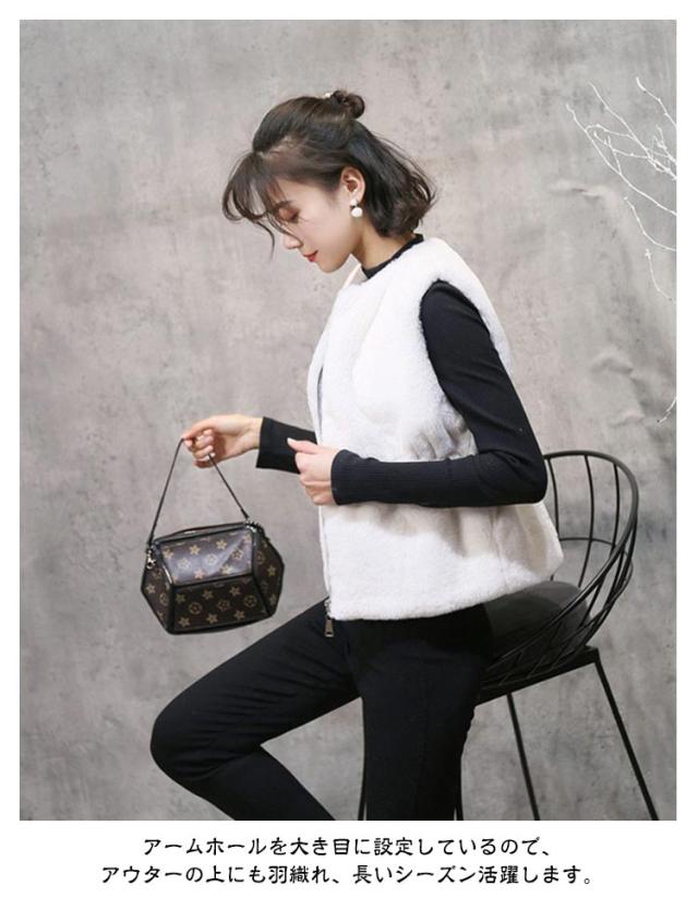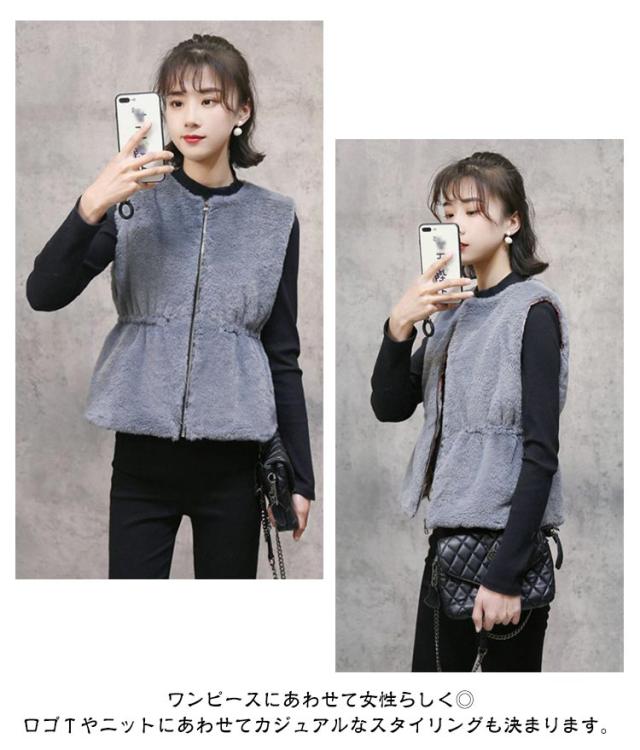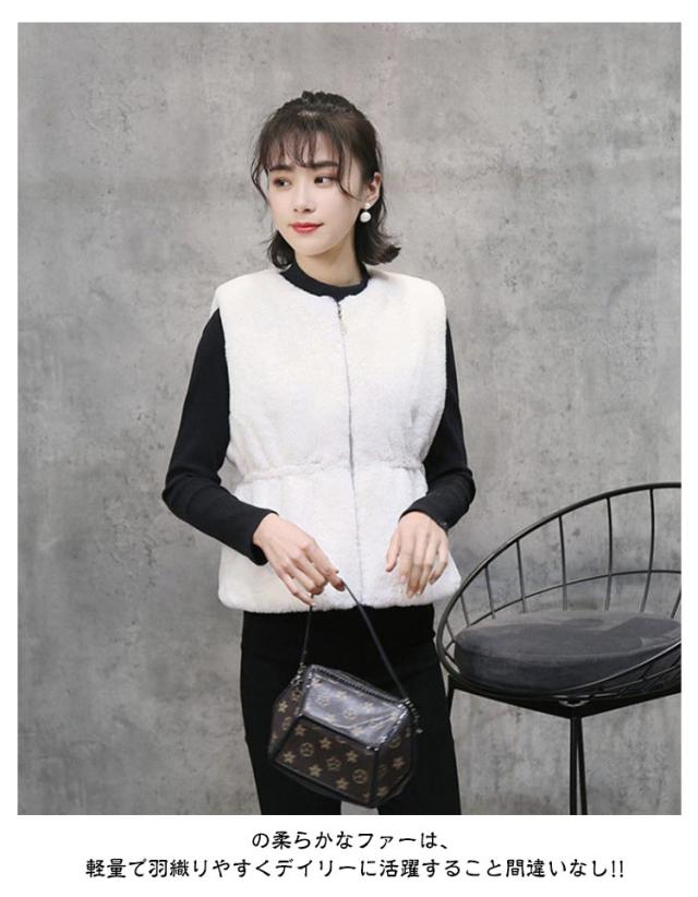 ファーベスト ショート丈 レディース エコファー ベスト ジャケット ノーカラー ノースリーブ もこもこ ふわふわ あたっか 冬 秋 アウター 羽織り クルーネック ジップアップ ベスト 秋物 秋服 トップス 防寒 保温 黒 白 ベージュ 2023 【送無】