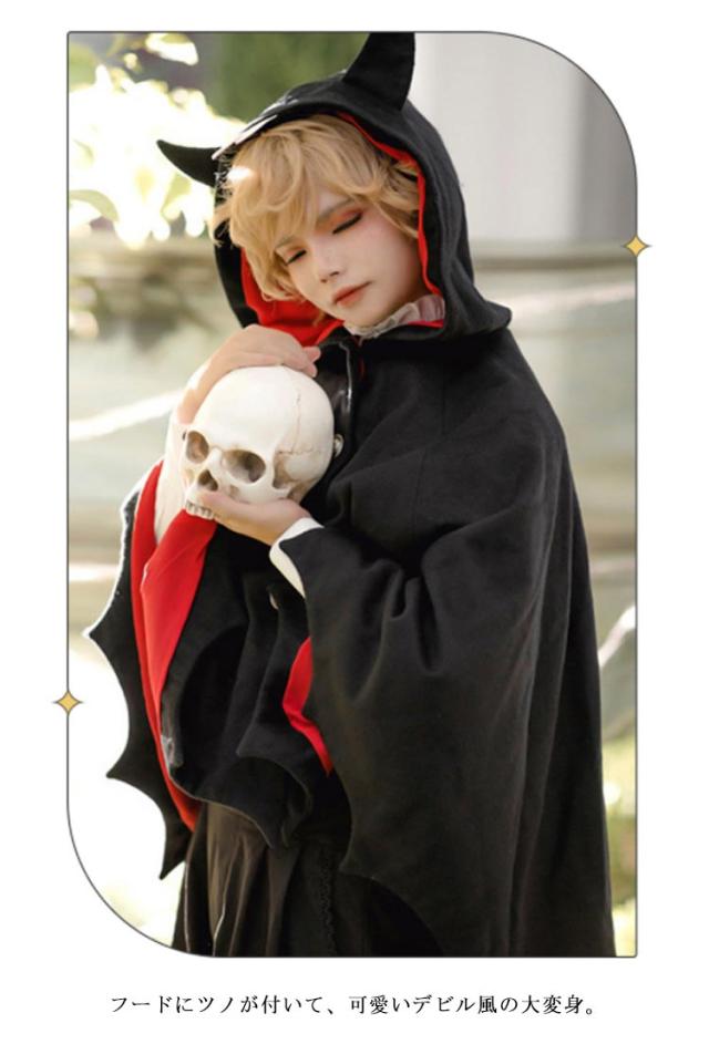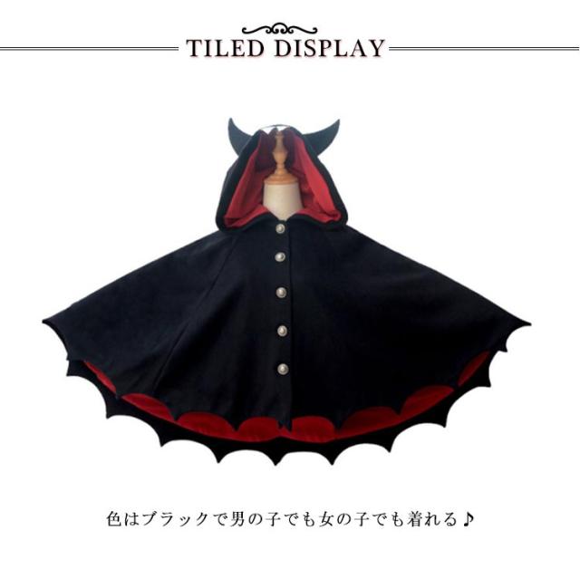 | ・デビル風マント ・簡単にハロウィン気分! ・手軽に羽織るだけのマントタイプ。 ・フードにツノが付いて、可愛いデビル風の大変身。 ・色はブラックで男の子でも女の子でも着れる♪ ・私服の上にそのまま羽織ることが出来るので、着替えも楽ちん! | |