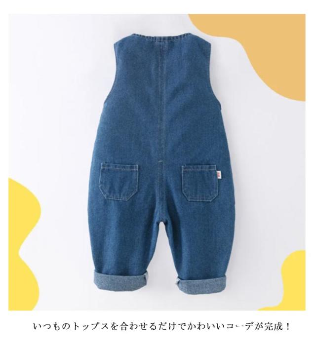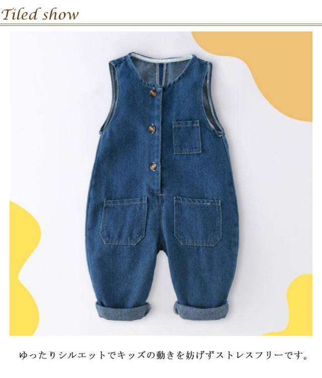 サロペット デニム 女の子 男の子 子供服 オーバーオール ロングパンツ オールインワン 長ズボン 綿 ボトムス キッズ ベビー 通学 通園 春 夏 秋 シンプル 薄手 無地 ゆったり 80 90 100 110 120