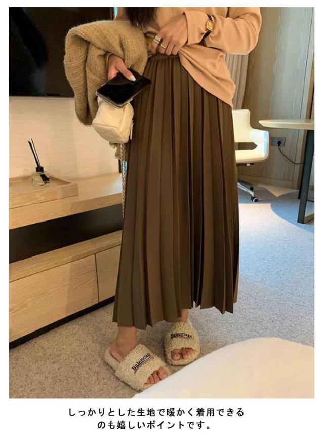 | カジュアルにもキレイめにも対応できる冬バージョンプリーツスカート登場♪ 秋冬にピッタリな素材で女性らしい柔らかい雰囲気を演出。 しっかりとした生地で暖かく着用できるのも嬉しいポイントです。 プリーツが縦ラインを強調してくれるので脚長効果も抜群。 様々なシーンにフィットする、きちんと感と軽やかさのバランスが魅力のアイテムです。 | |