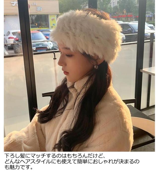 ヘアバンド レディース リアルラビット もこもこ ファー 小顔効果 ふわふわ 可愛い 無地 ヘアアクセサリー プレゼント 暖かい 小物 便利 おしゃれ 送料無料