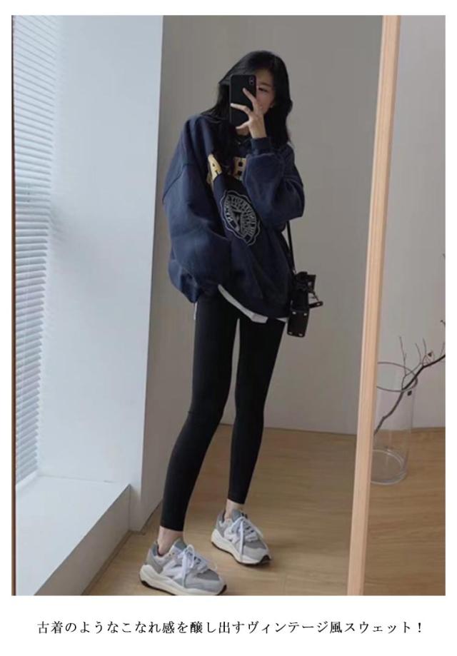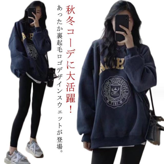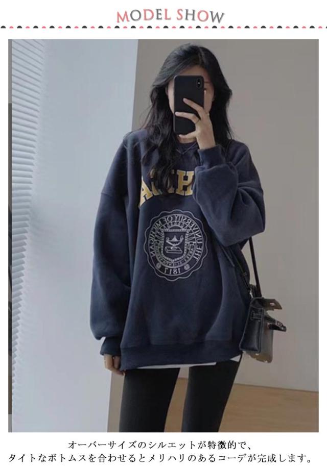 スウェット パーカー 裏起毛 レディース プリント トレーナー 丸首 トップス 大きいサイズ ロゴスウェット ロゴ プルオーバー あったか 防寒 ドロップショルダー オーバーサイズ ゆったり お尻が隠れる 長袖 秋 冬 M L XL 2XL 送料無料