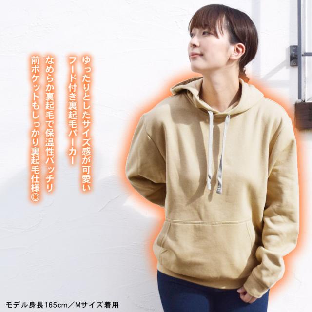 ゆったりとしたサイズ感が可愛いフード付き裏起毛パーカー♪