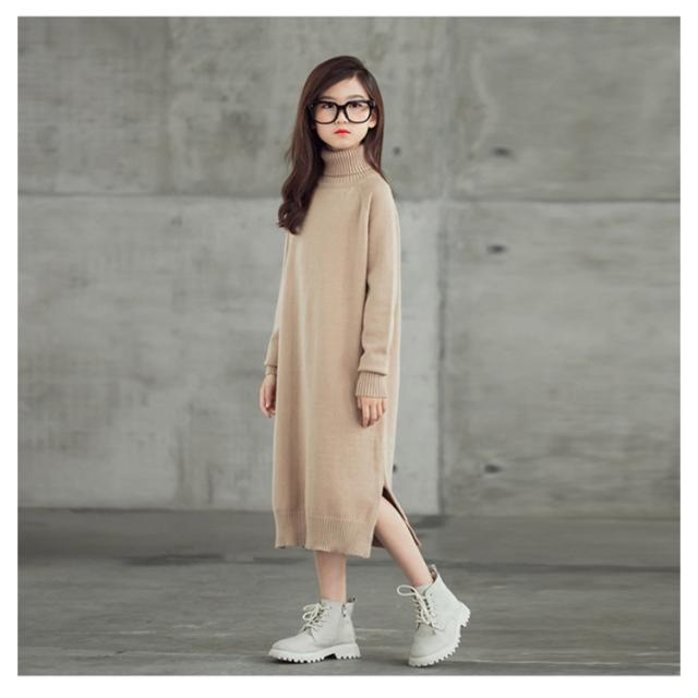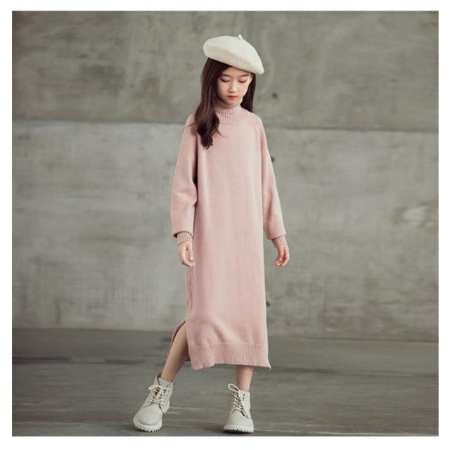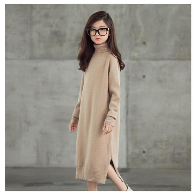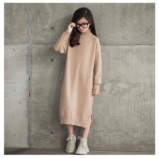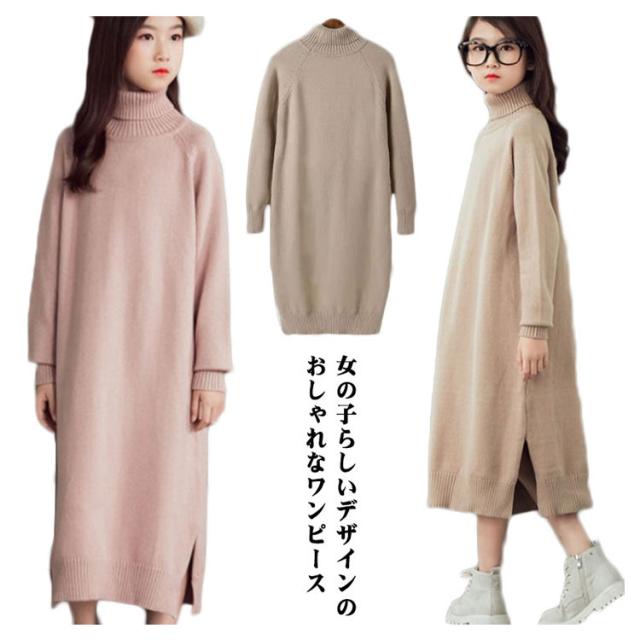 ワンピース 長袖 女の子 タートルネック リブ編み 無地 韓国 子供服 赤ちゃん 服 キッズ ニット 子ども ワンピース ニットワンピース ワンピ フレア シンプル 子ども服 カジュアル ゆったり 春 秋 冬 ひざ丈 ガールズ ジュニア 120 130 140 150 160 170 送料無料