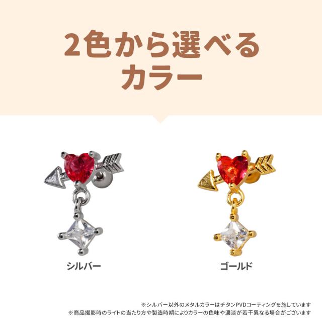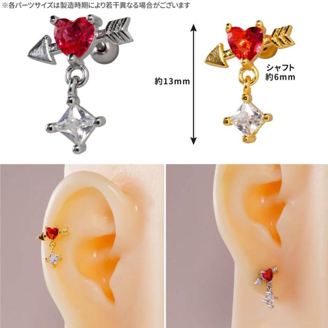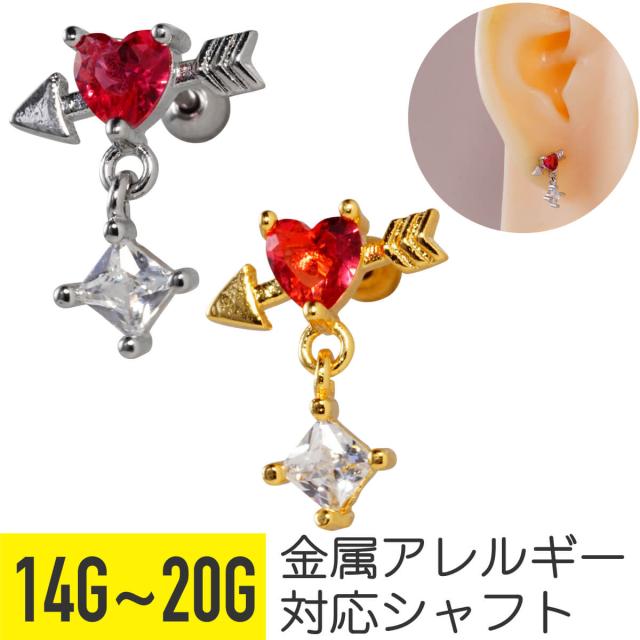 ハート アロー スクエア ジュエル チャーム ストレートバーベル 14G 16G 18G 20G サージカルステンレス ヘリックス 軟骨 ボディピアス