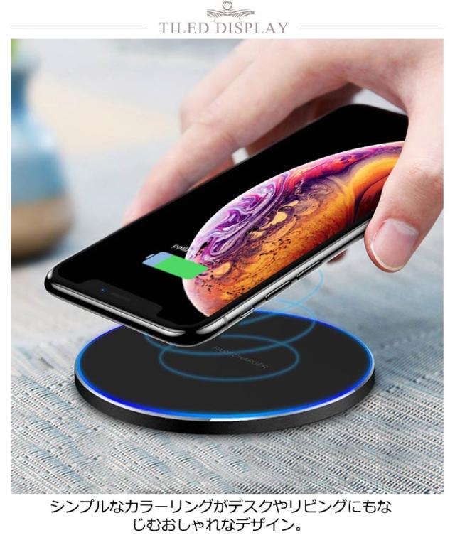| QIワイヤレス充電器 シンプルなカラーリングがデスクやリビングにもなじむおしゃれなデザイン | |